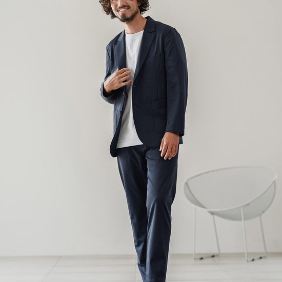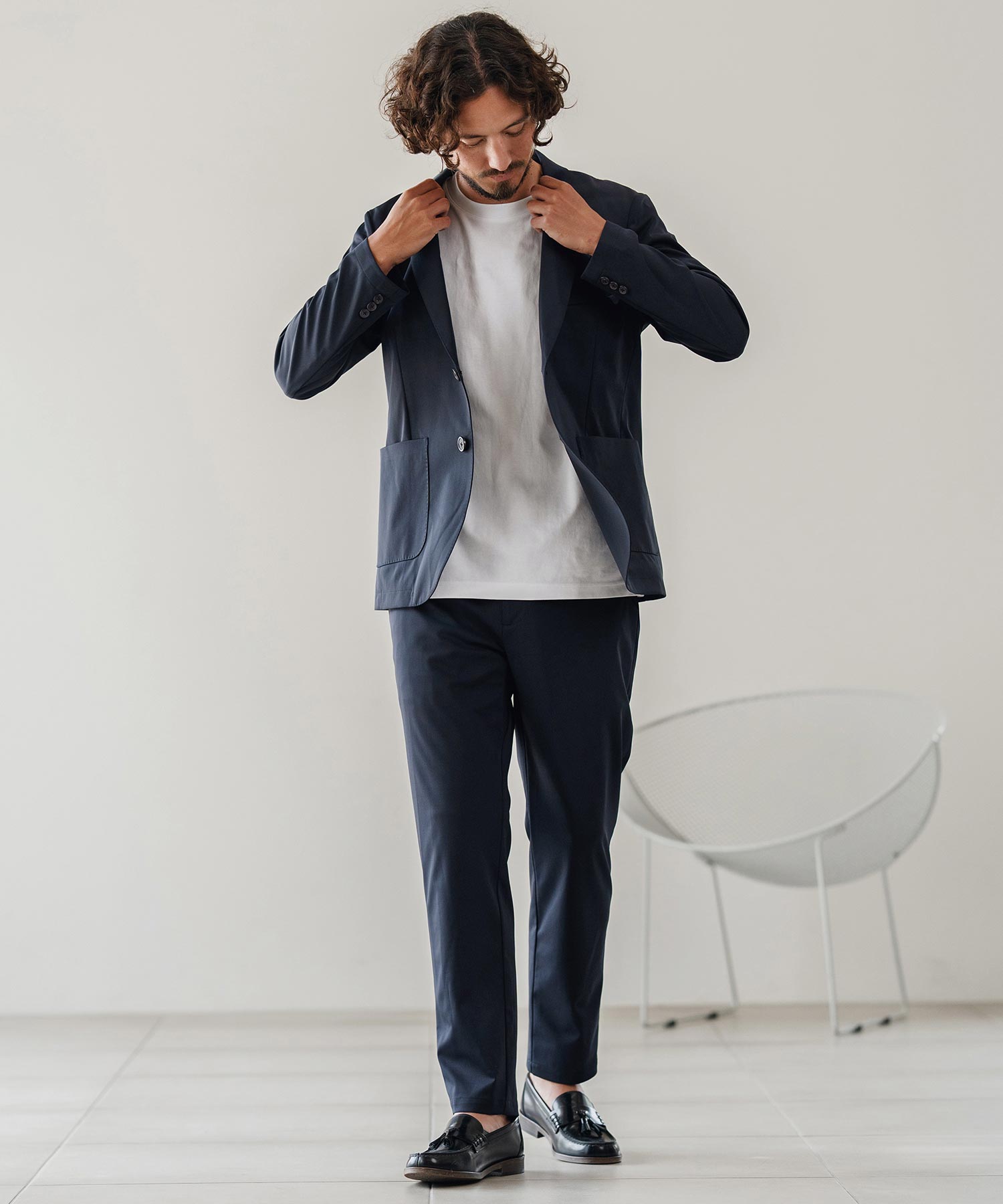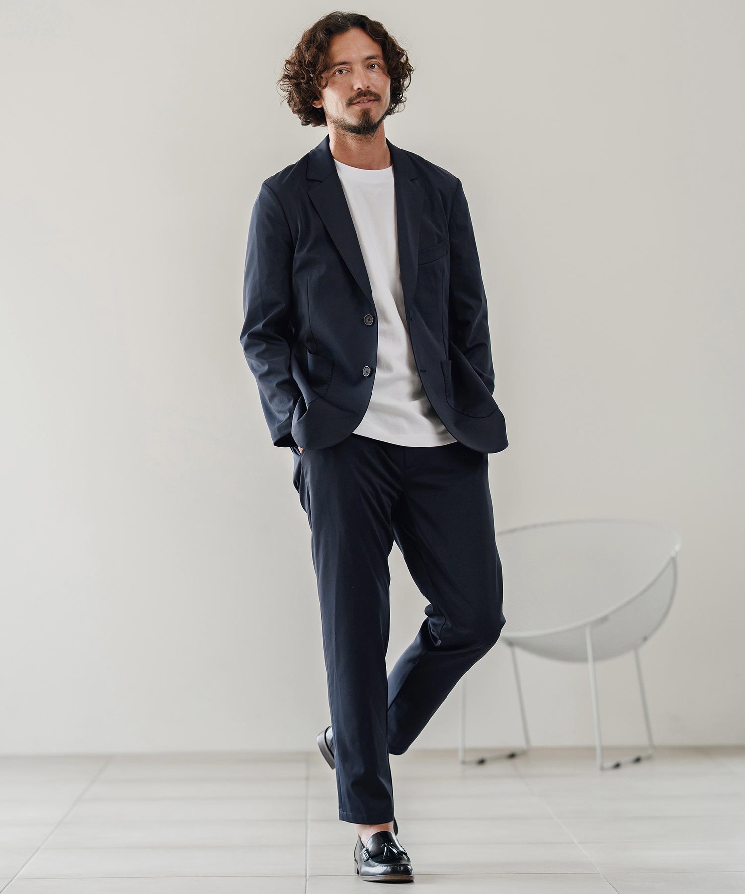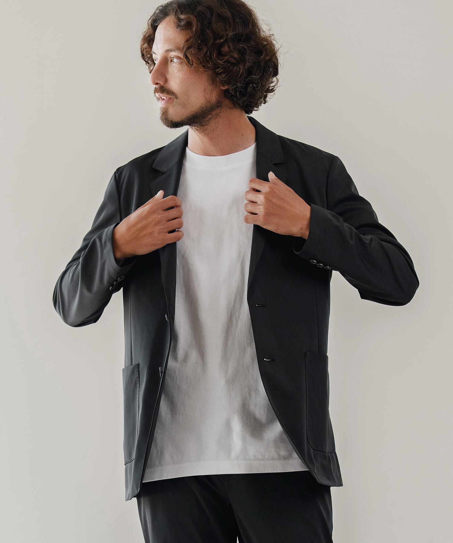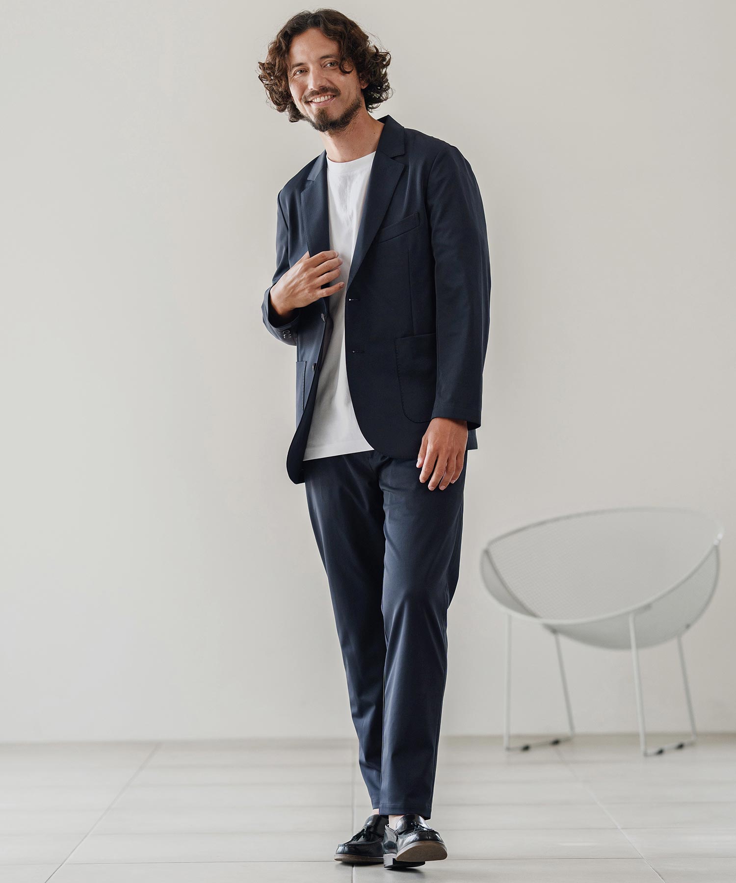 ビジネスの場ではYシャツをあわせて端正に、休日はTシャツやデニムなどのカジュアルアイテムとも自然になじみます。