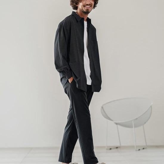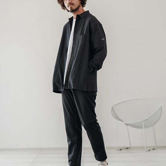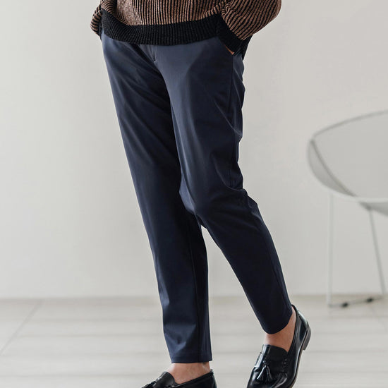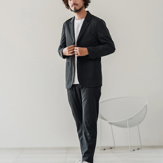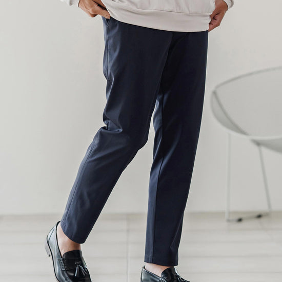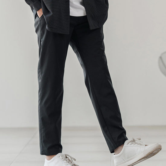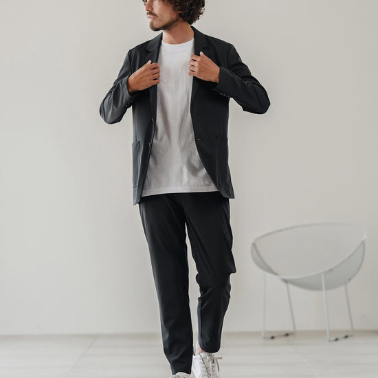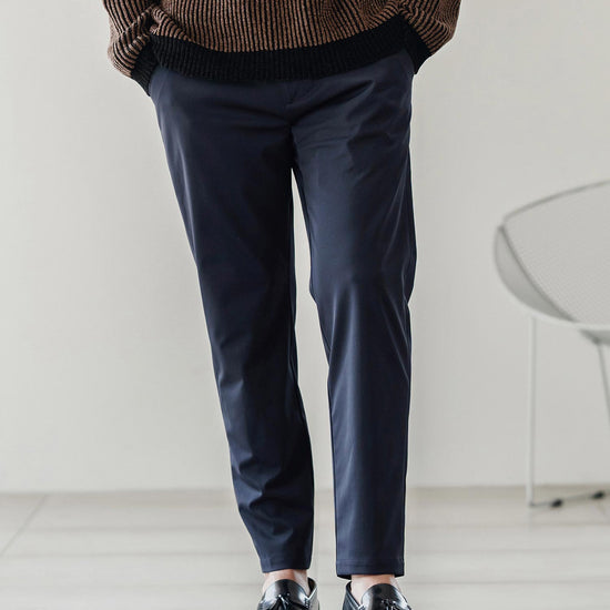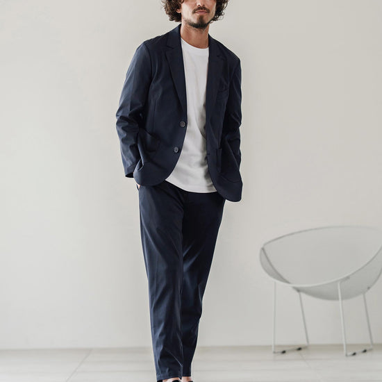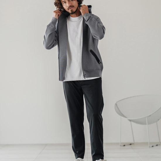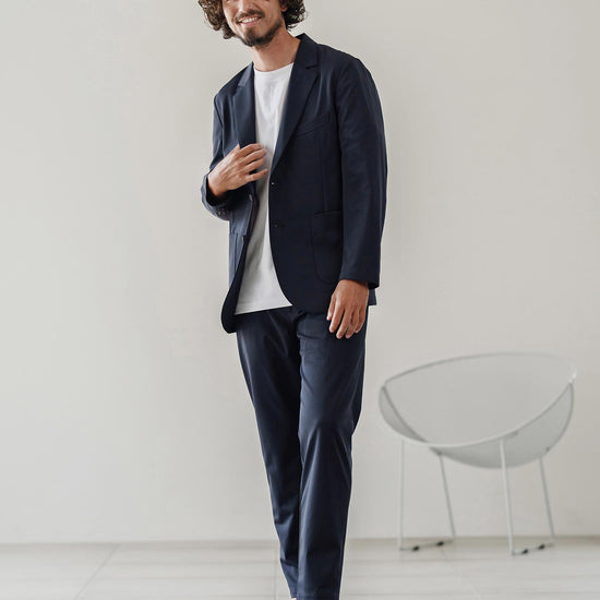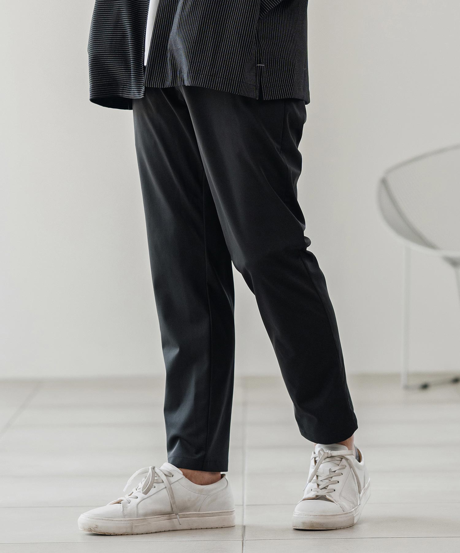 伸縮性のある生地が移動や長時間の着席を快適にし、日常から出張まで幅広く対応可能です。
