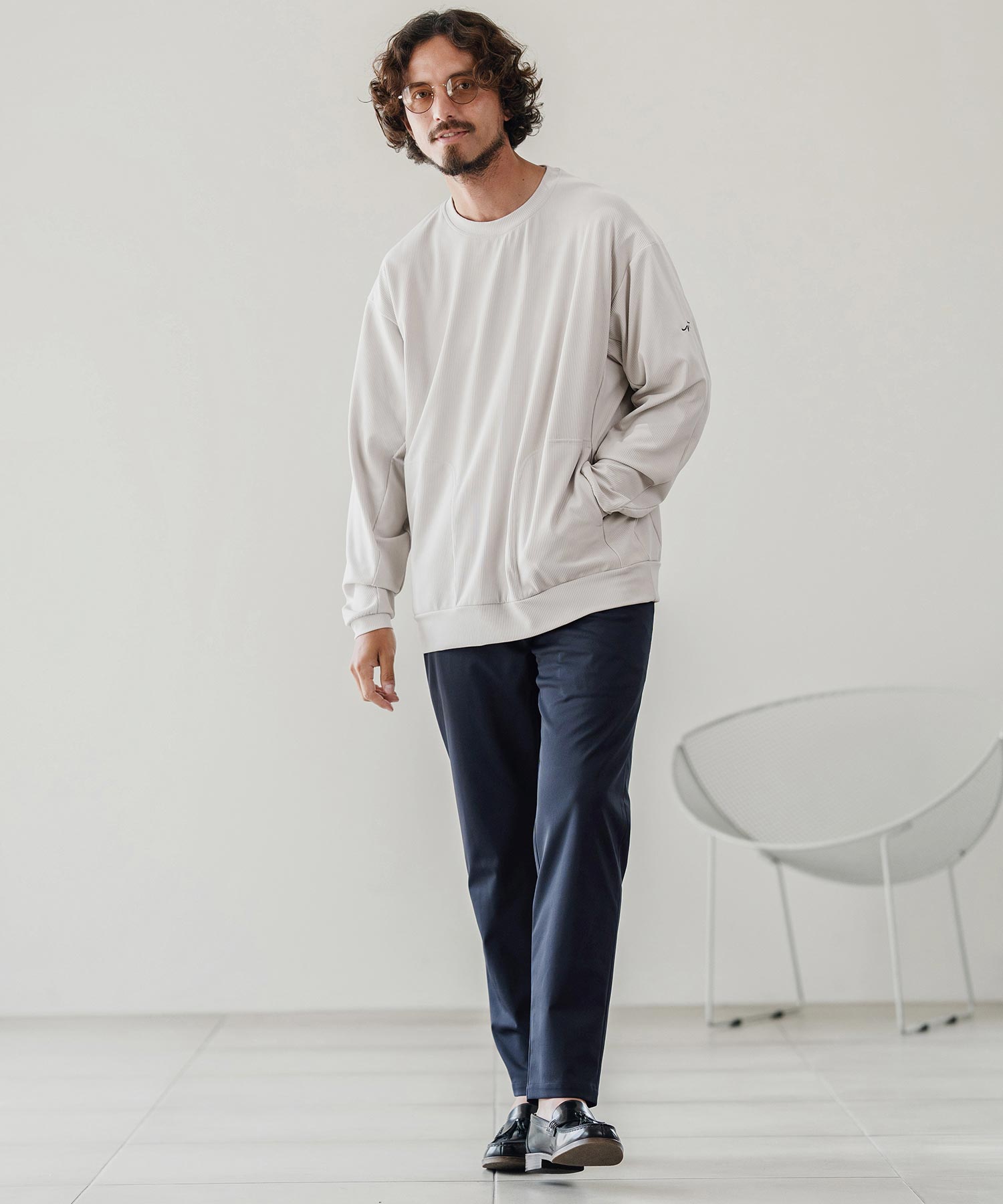 ビジネスの場では端正に、休日にはスニーカーやサンダルとも自然に合わせられます。