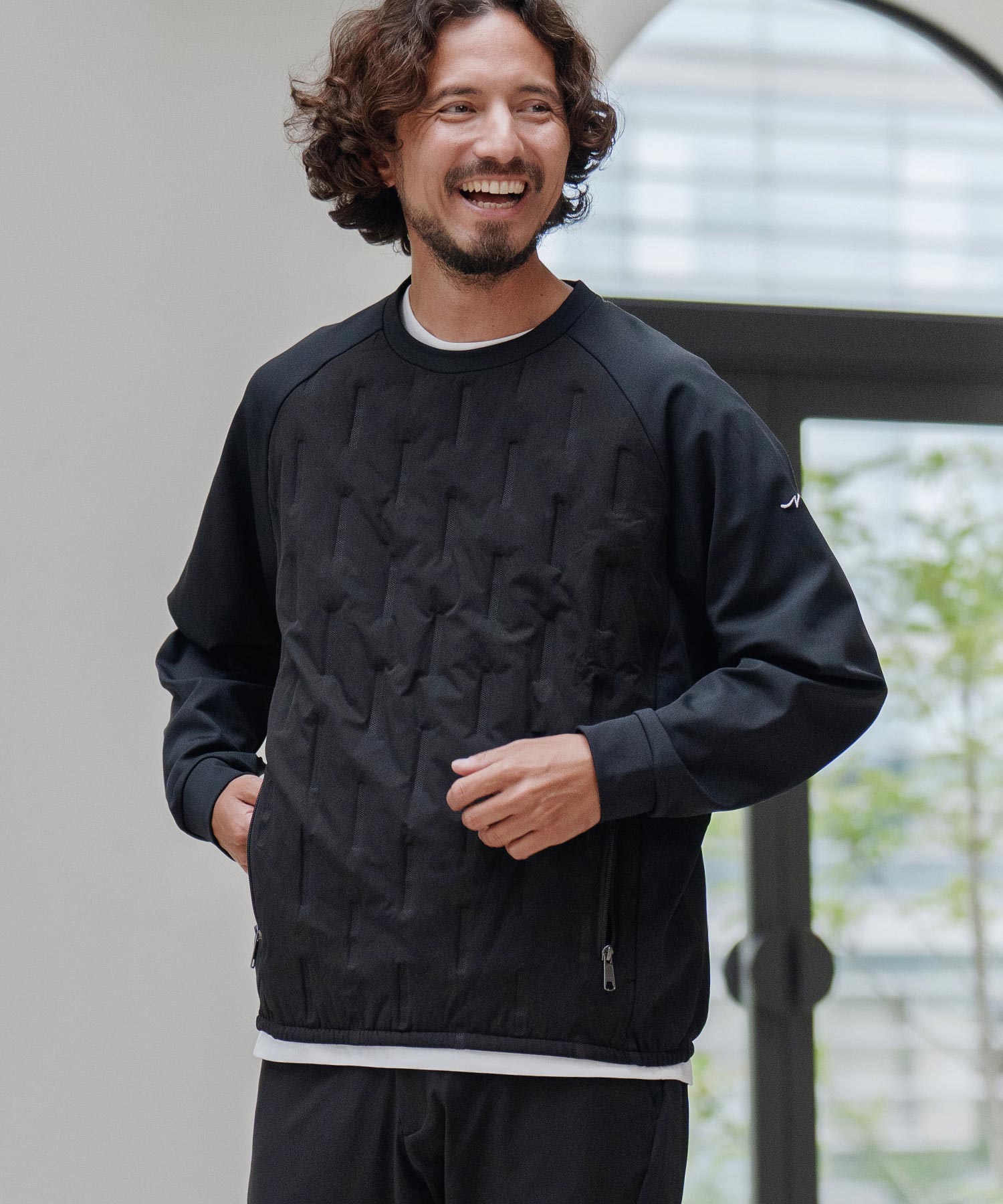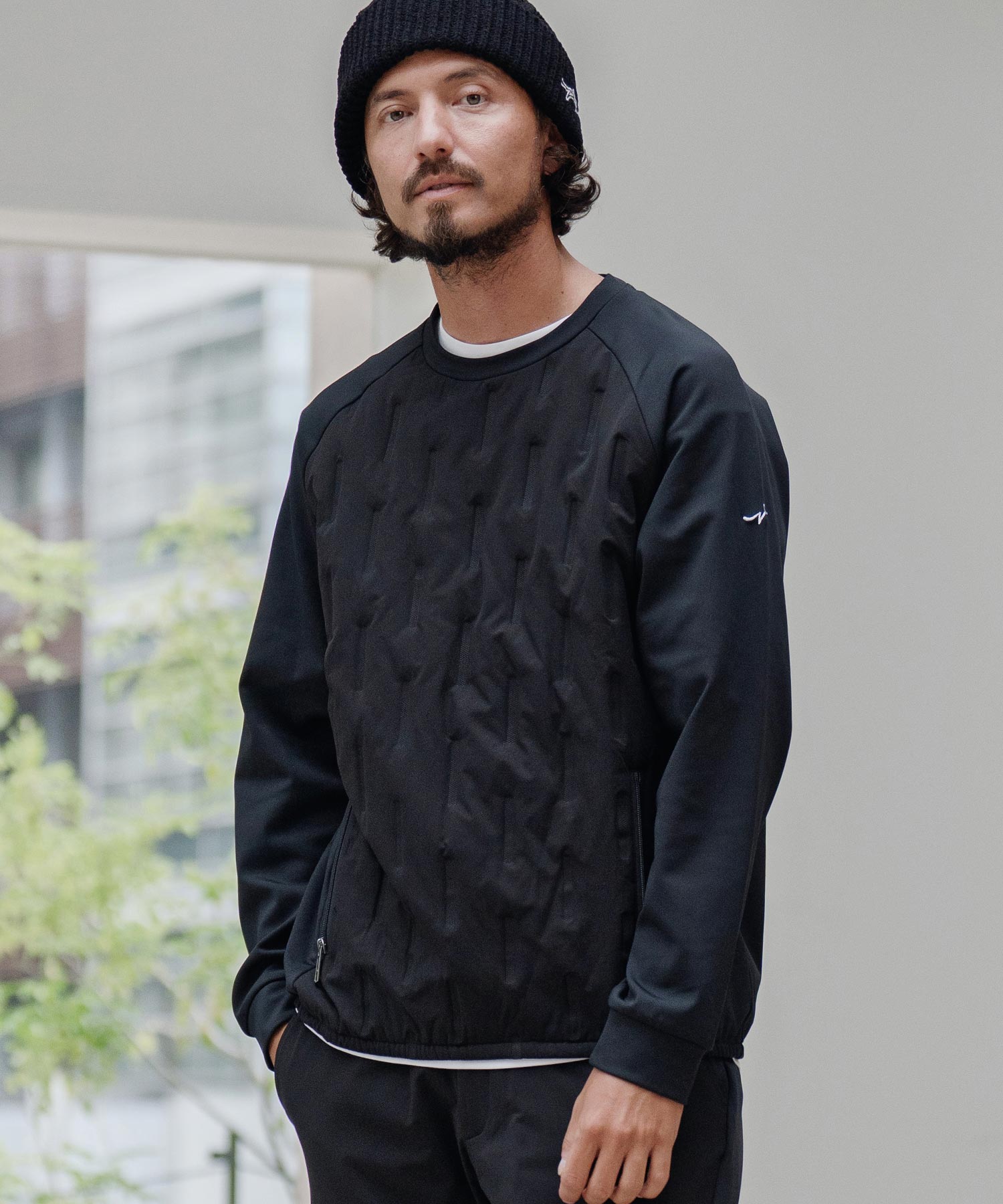 切り替え中綿ニットプルオーバー(裏起毛)