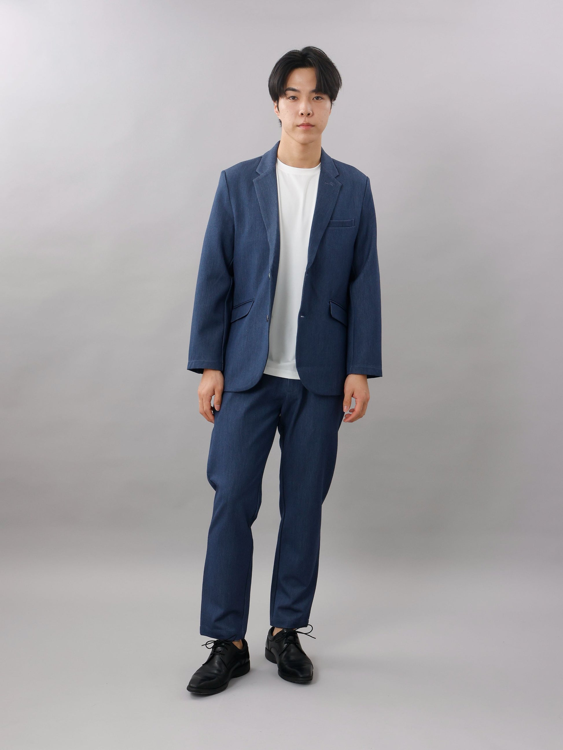 デニムのような上品な見た目と、パイル地のような柔らかな着心地を両立。シワになりにくく自宅で洗えるため、忙しい毎日でも清潔感を保てます。