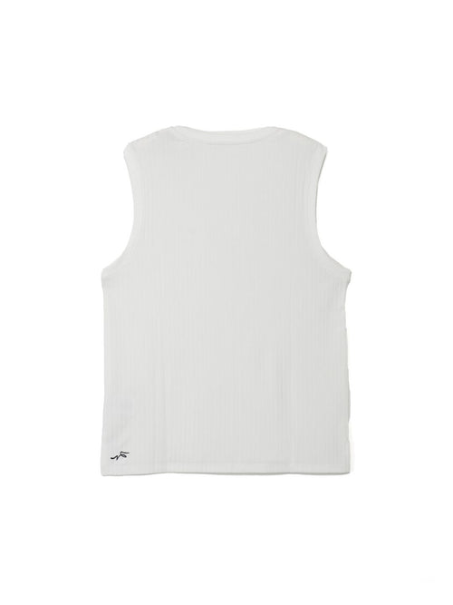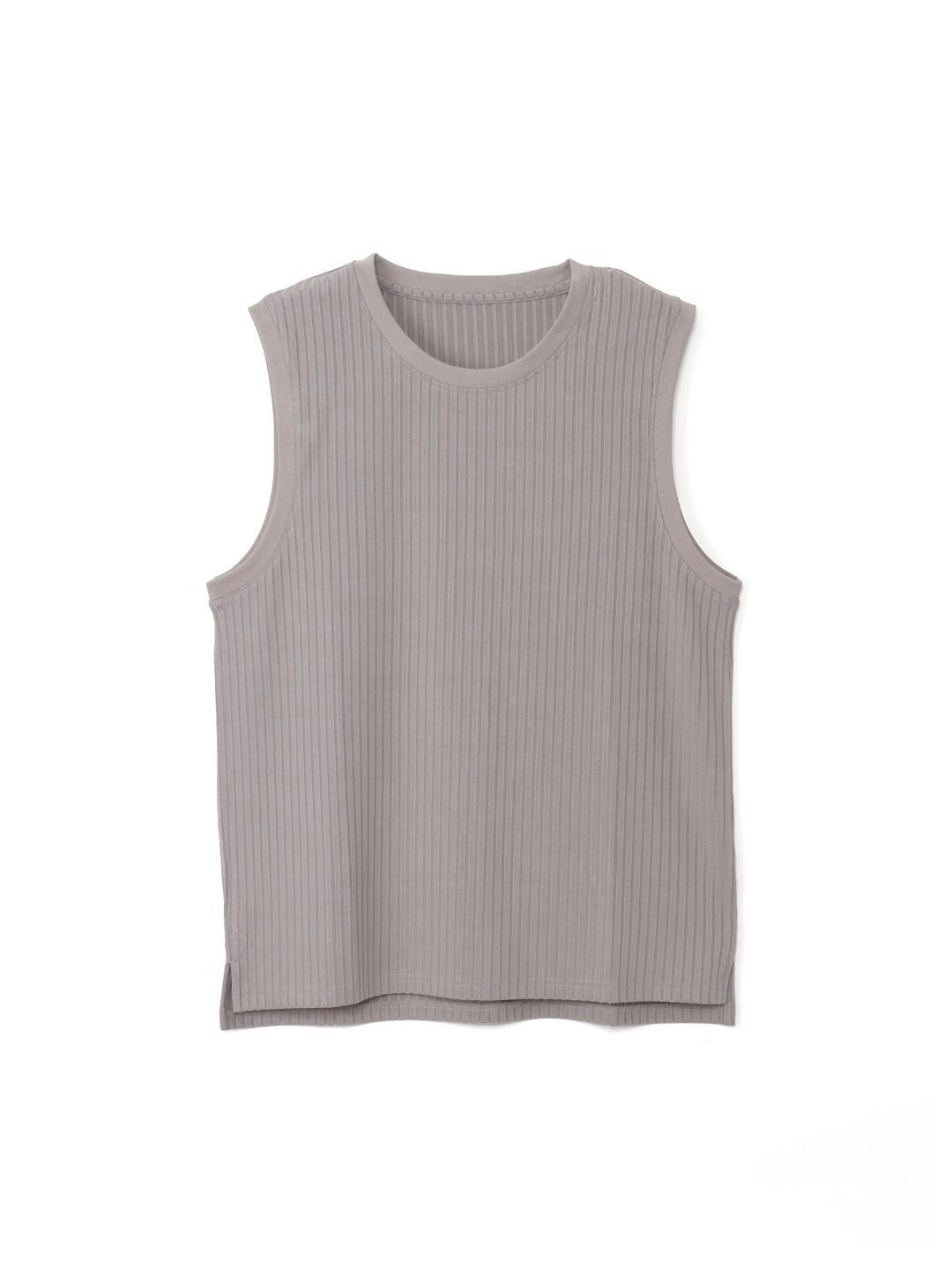レイヤードスタイルのアクセントとして活躍するタンクトップです。凹凸のある素材感で通気性が良く、汗をかいても快適な肌触りを保ちます。