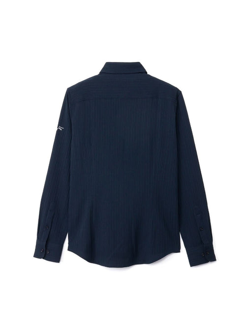 縦方向にシボ(凹凸)が入った楊柳生地を使用。肌への接地面が少なく通気性が抜群で、見た目にも涼しげな、春夏の最適解とも言えるシャツです。