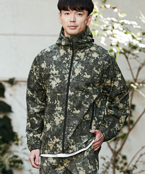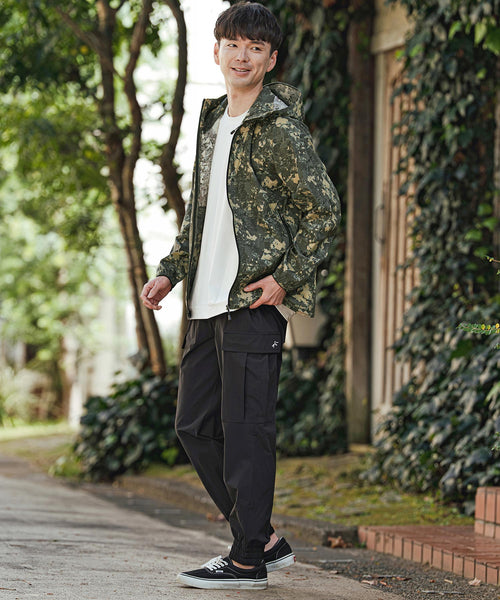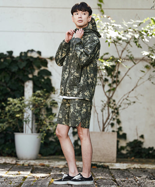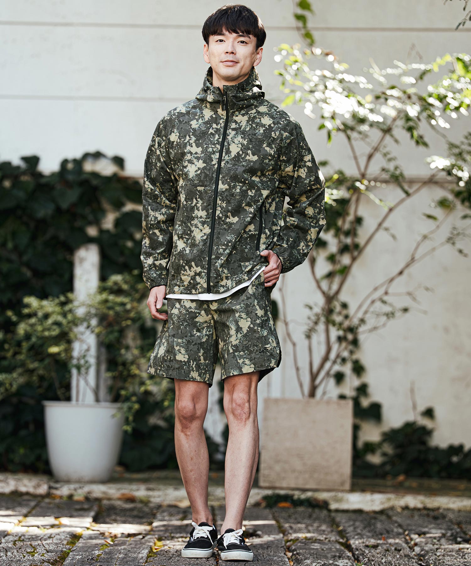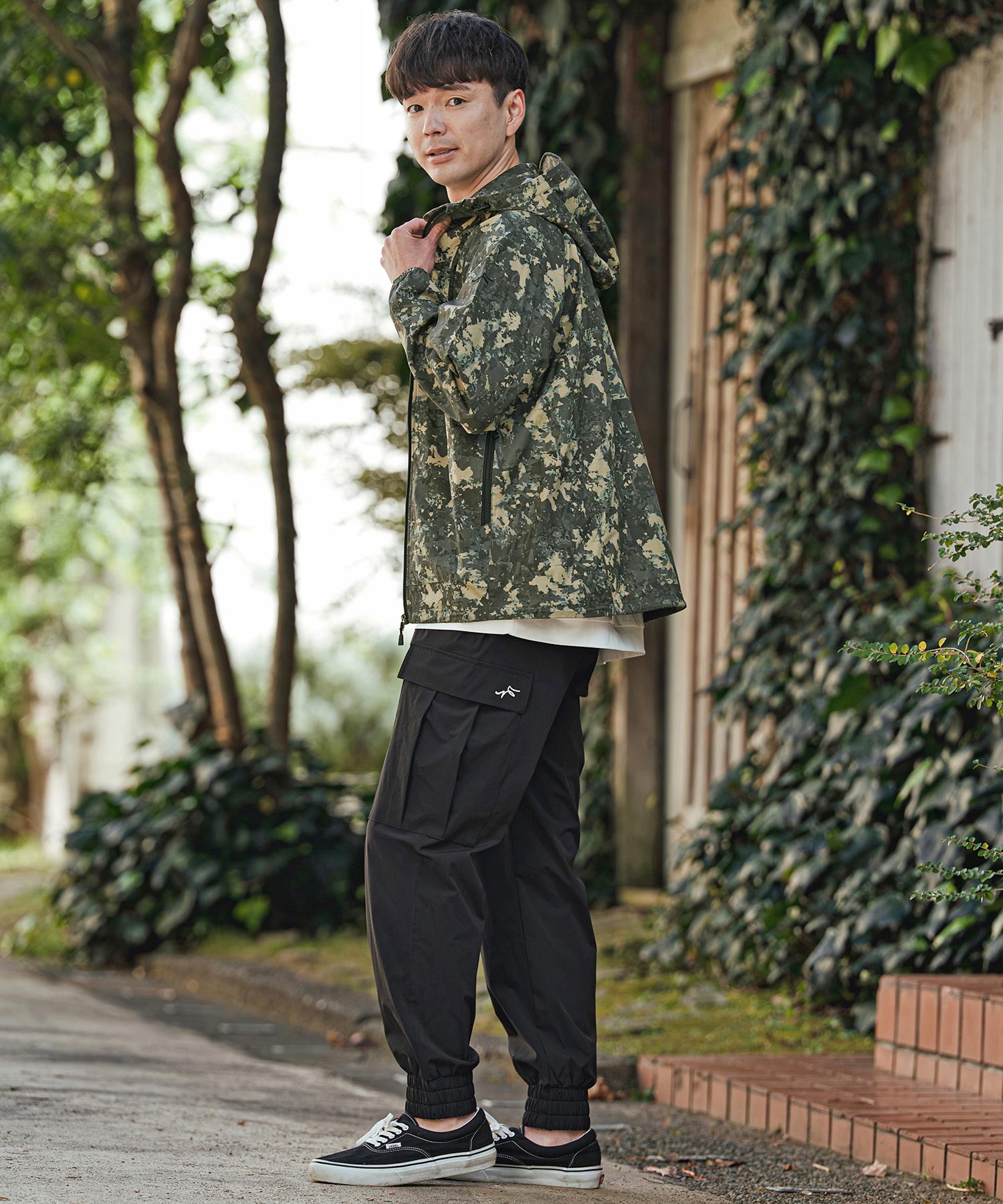 ブランドオリジナルのカモフラージュ柄をプリントした、デザインと機能性を兼ね備えた一着。アウトドアにも対応する耐久性と、タウンユースにも馴染む利便性を両立しました。