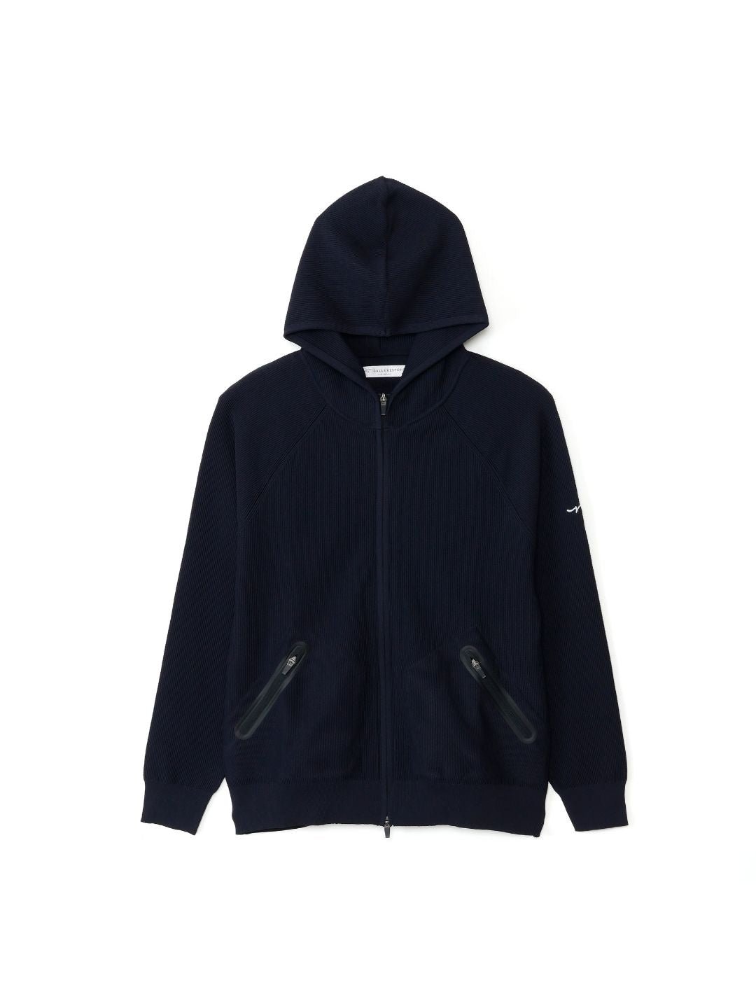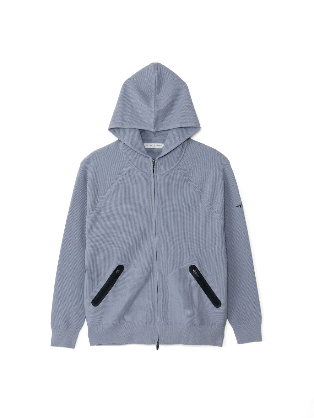 通気性の良い鹿子編みニットに、アウトドアウェアのような止水ジップなどのディテールをプラス。カジュアルながらも洗練された、大人の春夏の羽織りです。