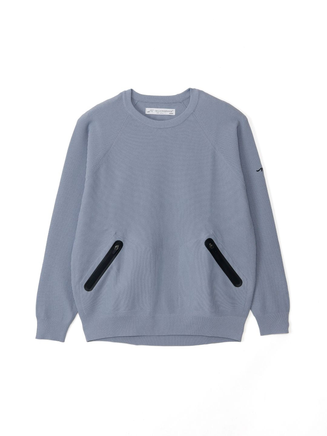 通気性の良い鹿子編みニットに、止水ポケットなどのテックなディテールを融合。Tシャツ感覚で着られる、機能的で洗練されたデザインニットです。