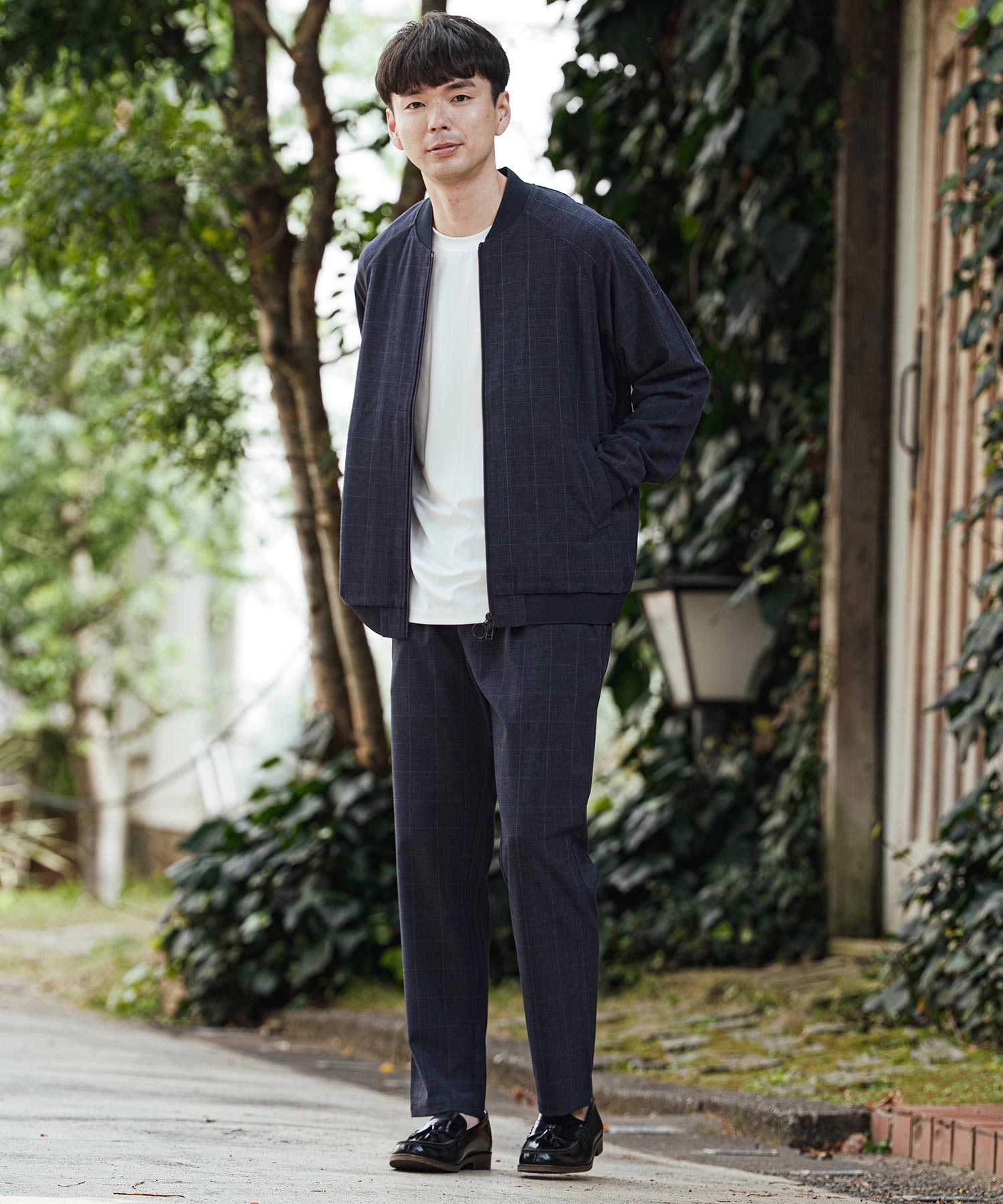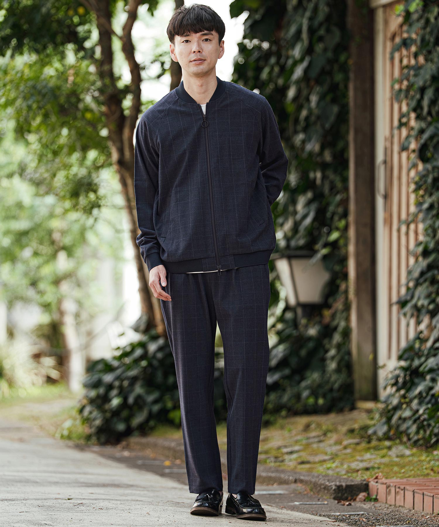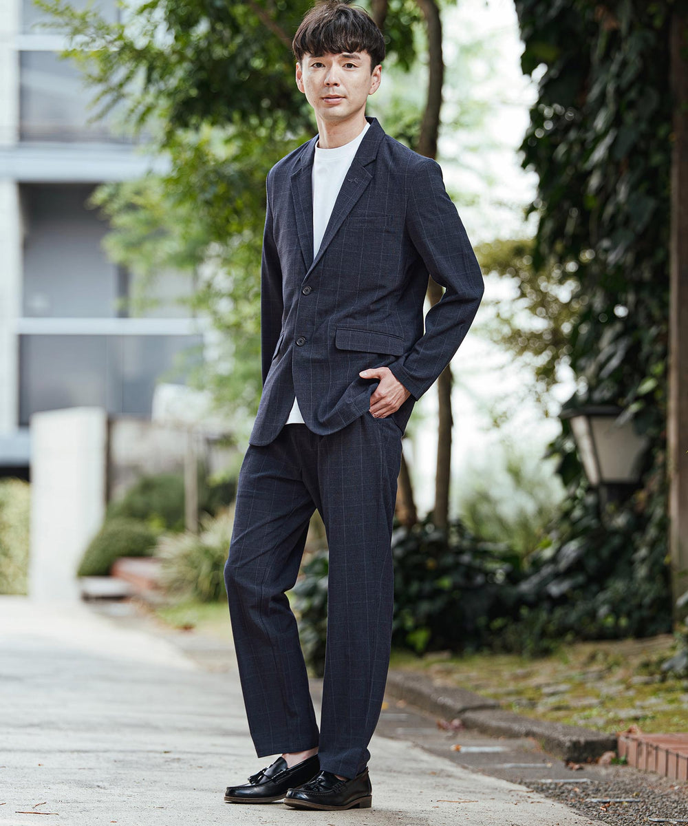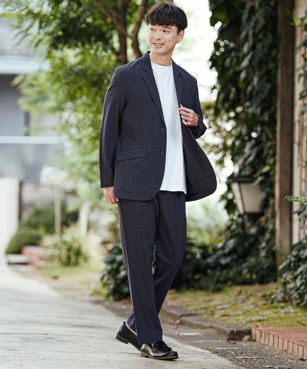 同素材のジャケットとセットアップで着用可能。ビジネスカジュアルとしても最適です。