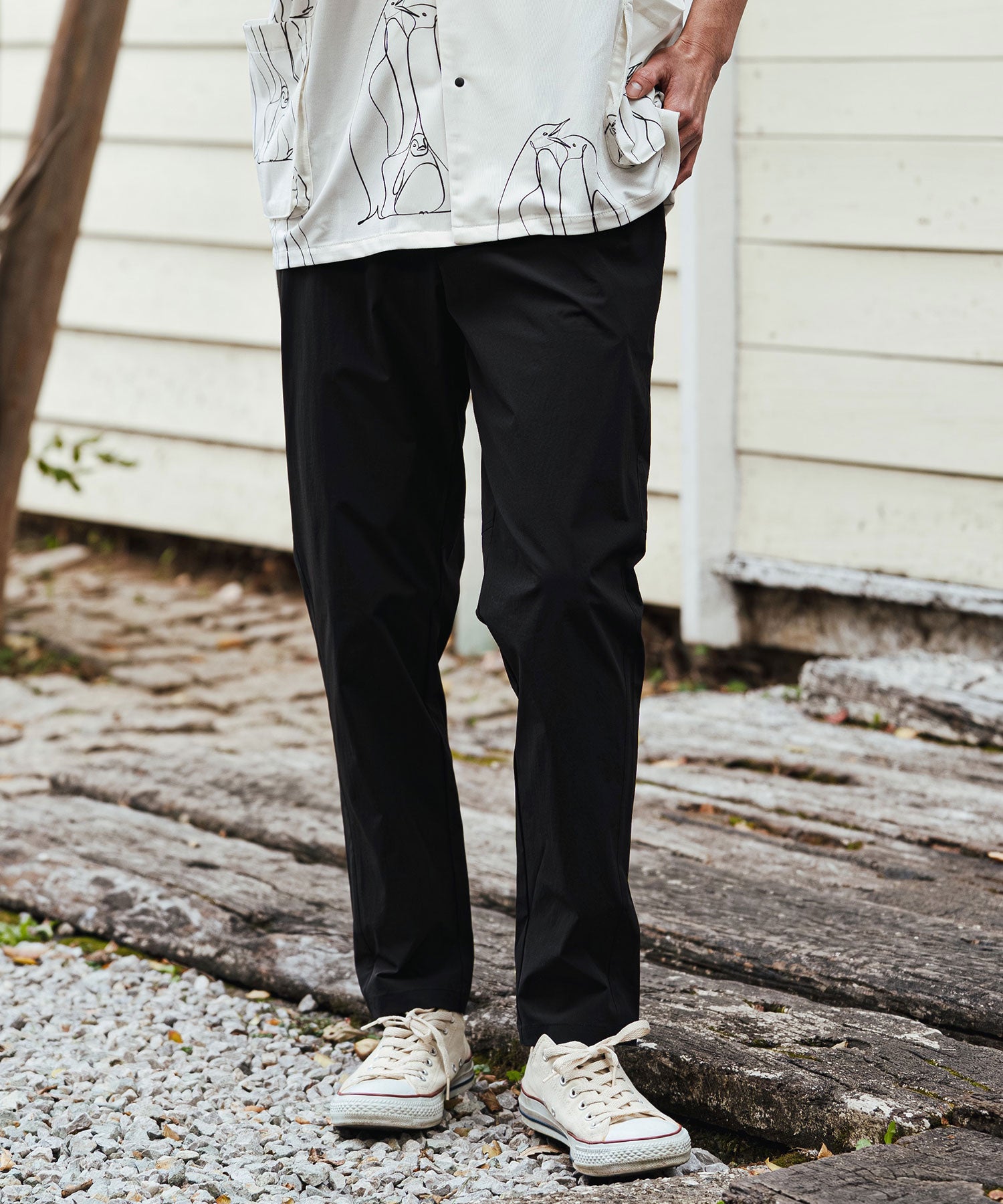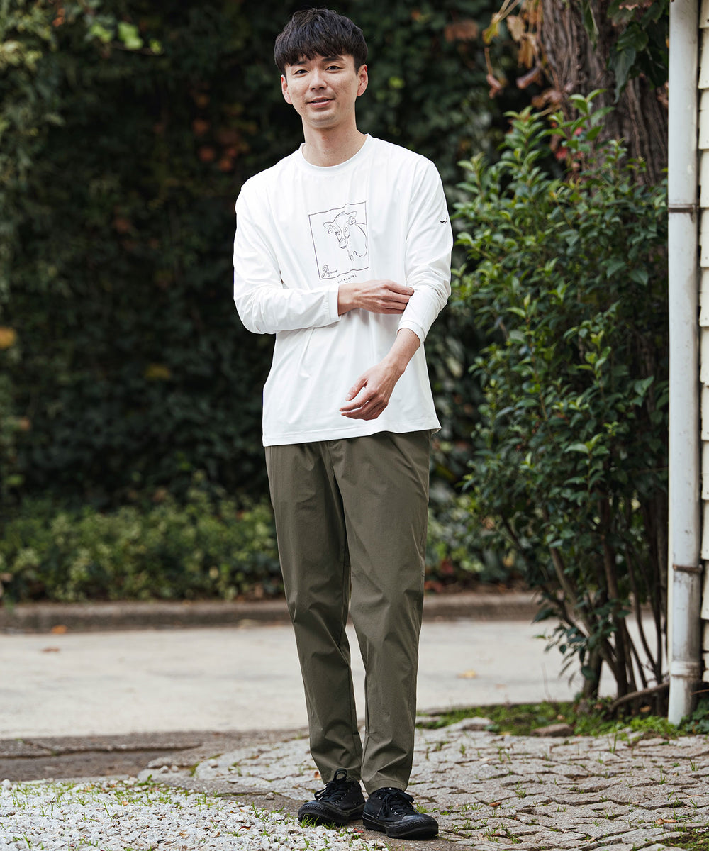 動きやすいゆとりがありながら、足元はすっきりとしたシルエットです。