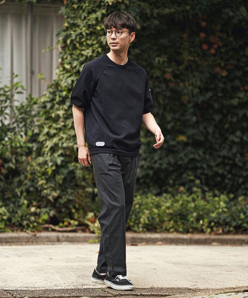 伸縮率約150%のストレッチ素材にタックを入れ、より快適な履き心地を追求しました。ウエストゴムの仕様を見直し、見た目のスマートさはそのままに、リラックス感を高めました。