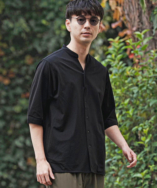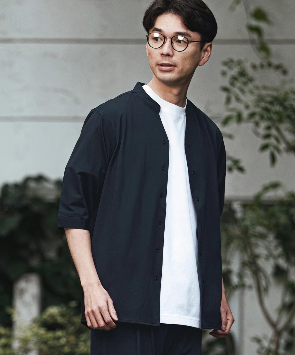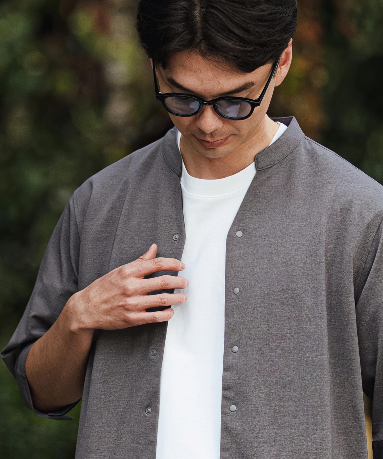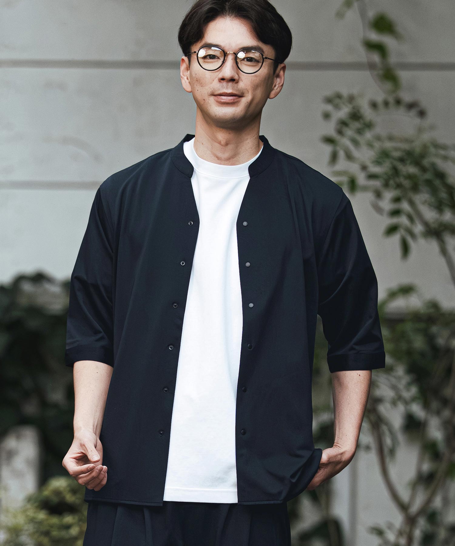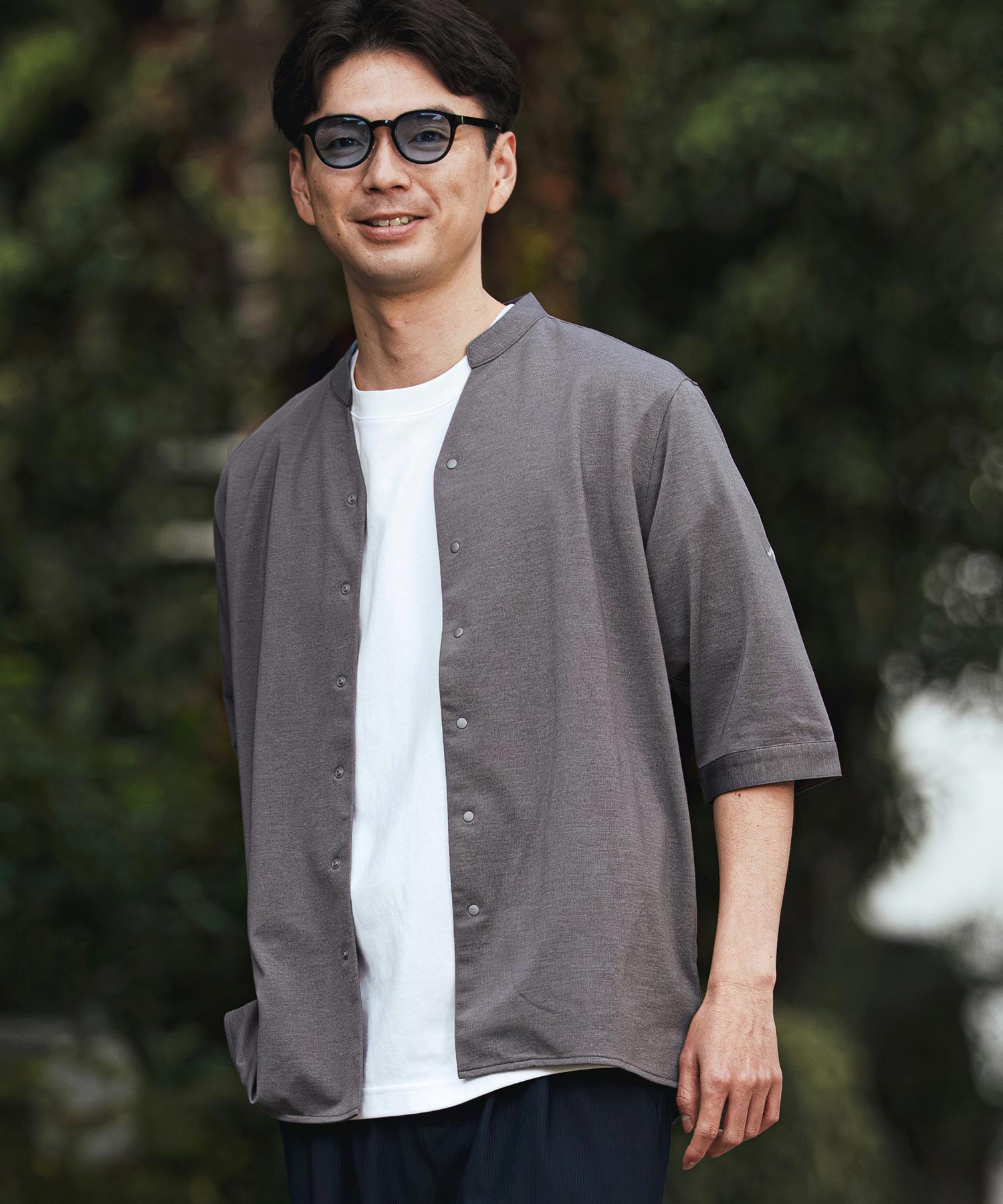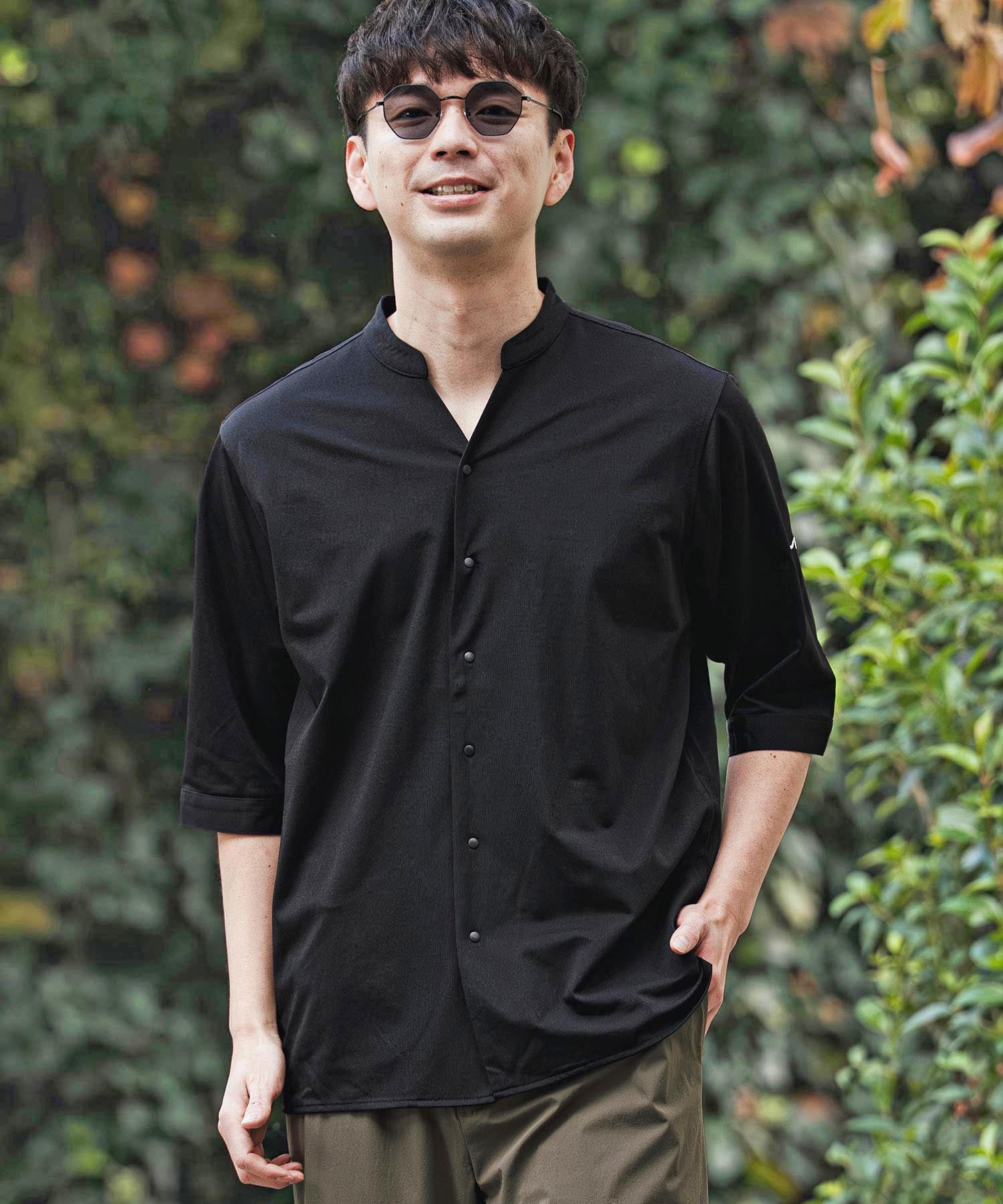 「KOKAGEシリーズ」の快適な機能性はそのままに、首元がすっきり見えるバンドカラーデザインを採用。五分袖で二の腕をカバーしつつ、涼しく着用いただけます。