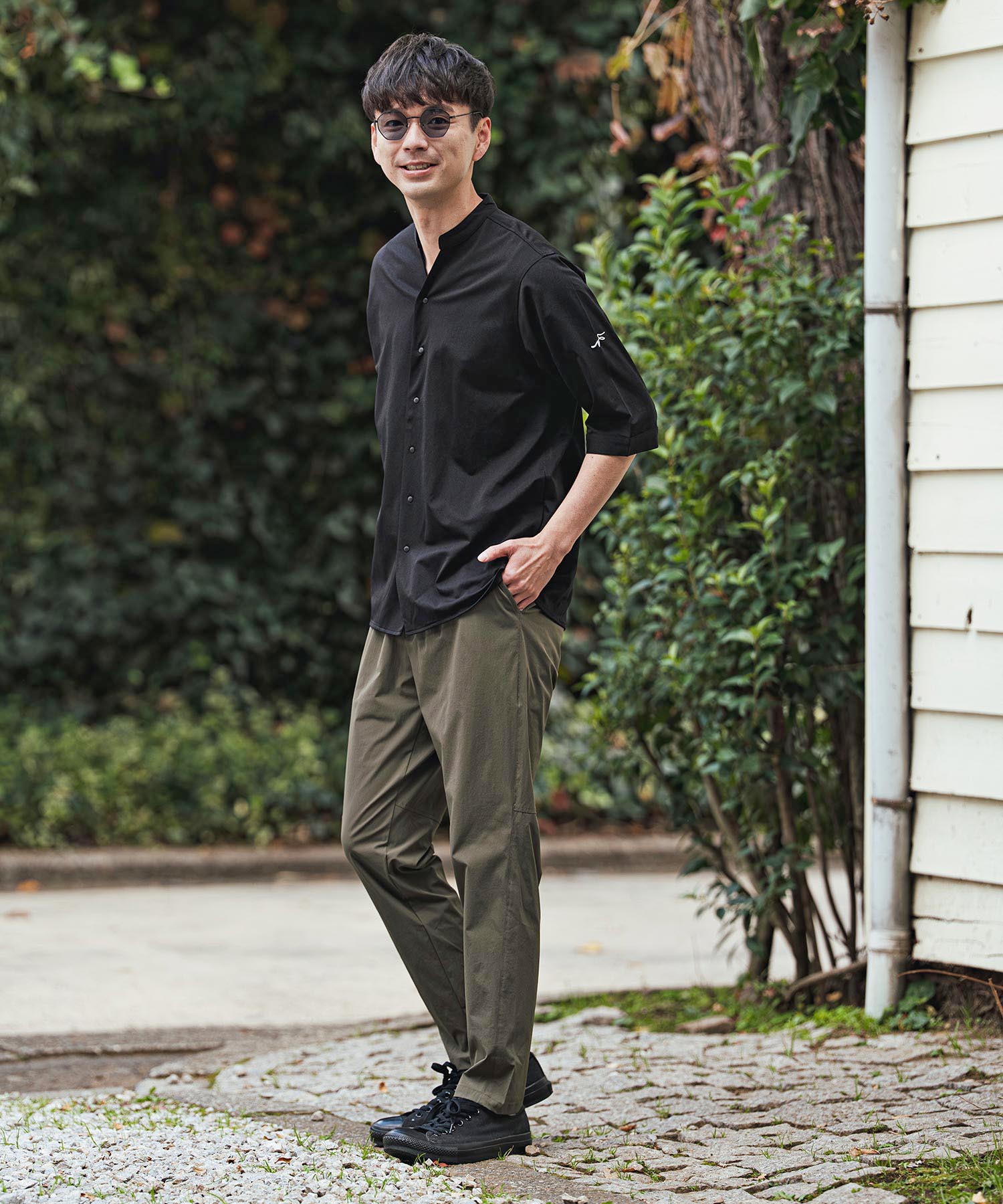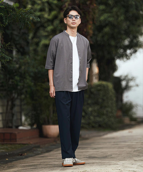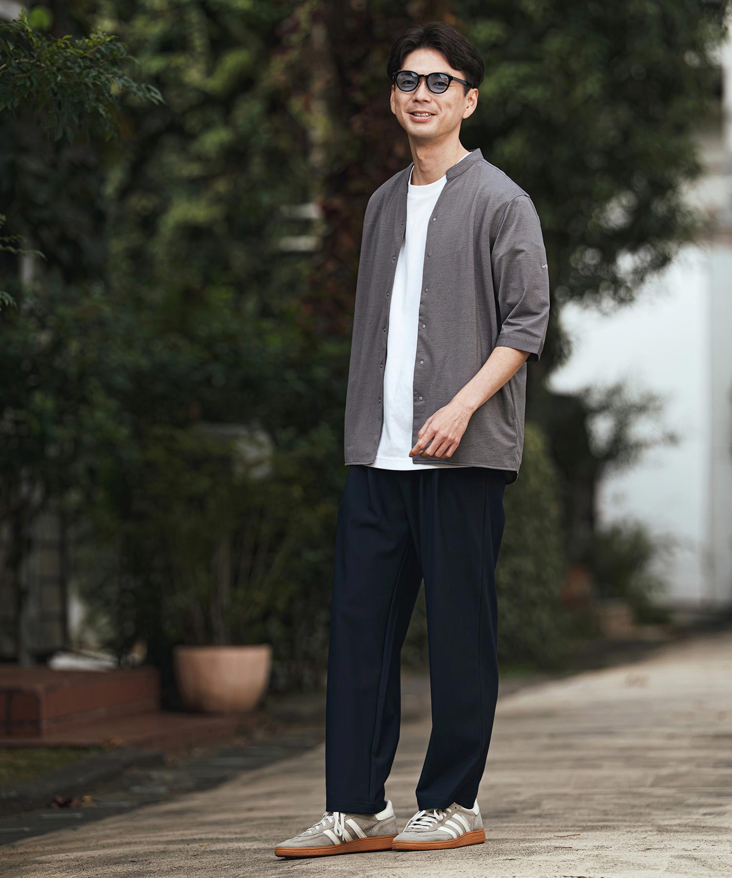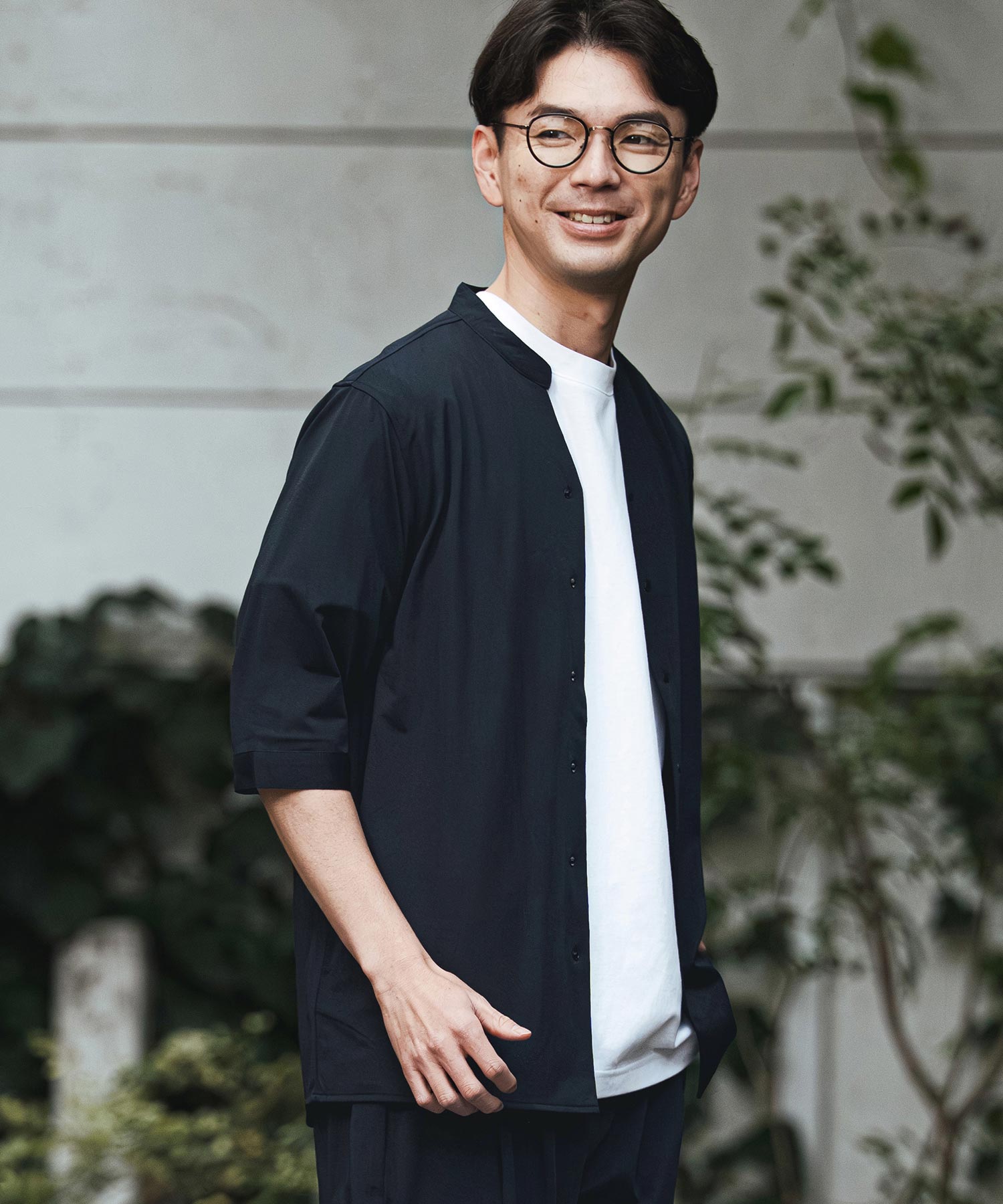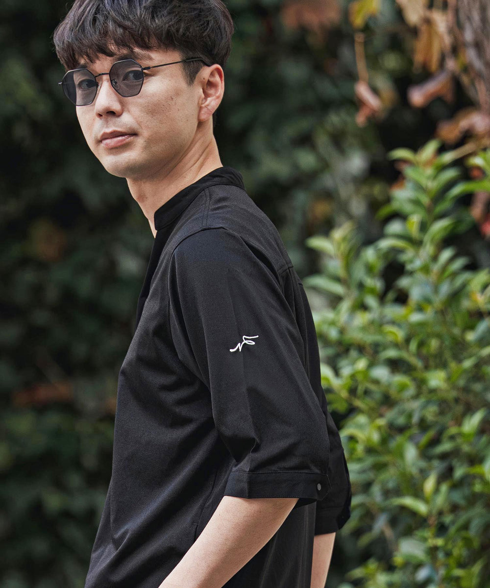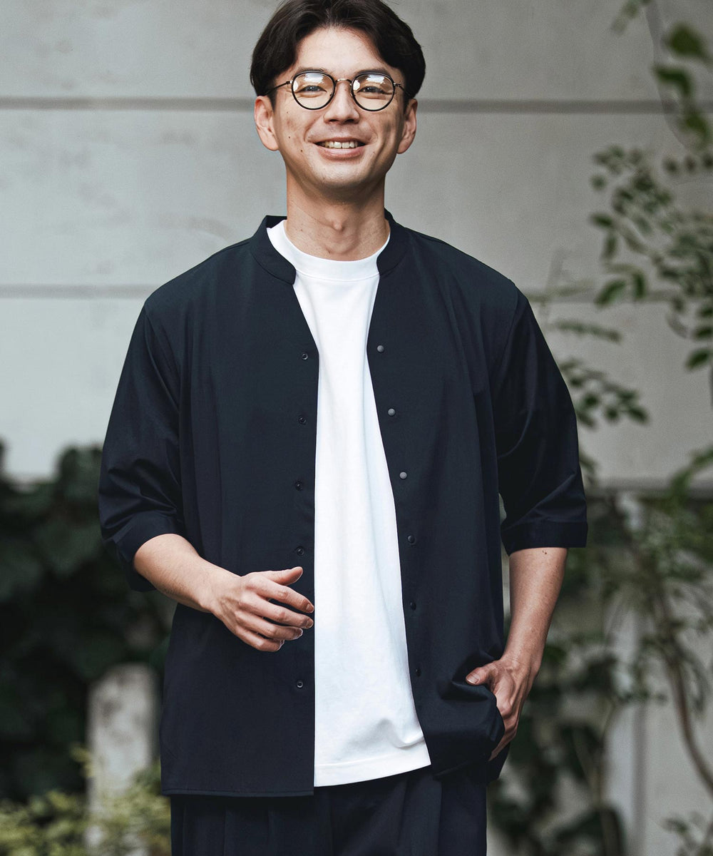 「KOKAGEシリーズ」の快適な機能性はそのままに、首元がすっきり見えるバンドカラーデザインを採用。五分袖で二の腕をカバーしつつ、涼しく着用いただけます。