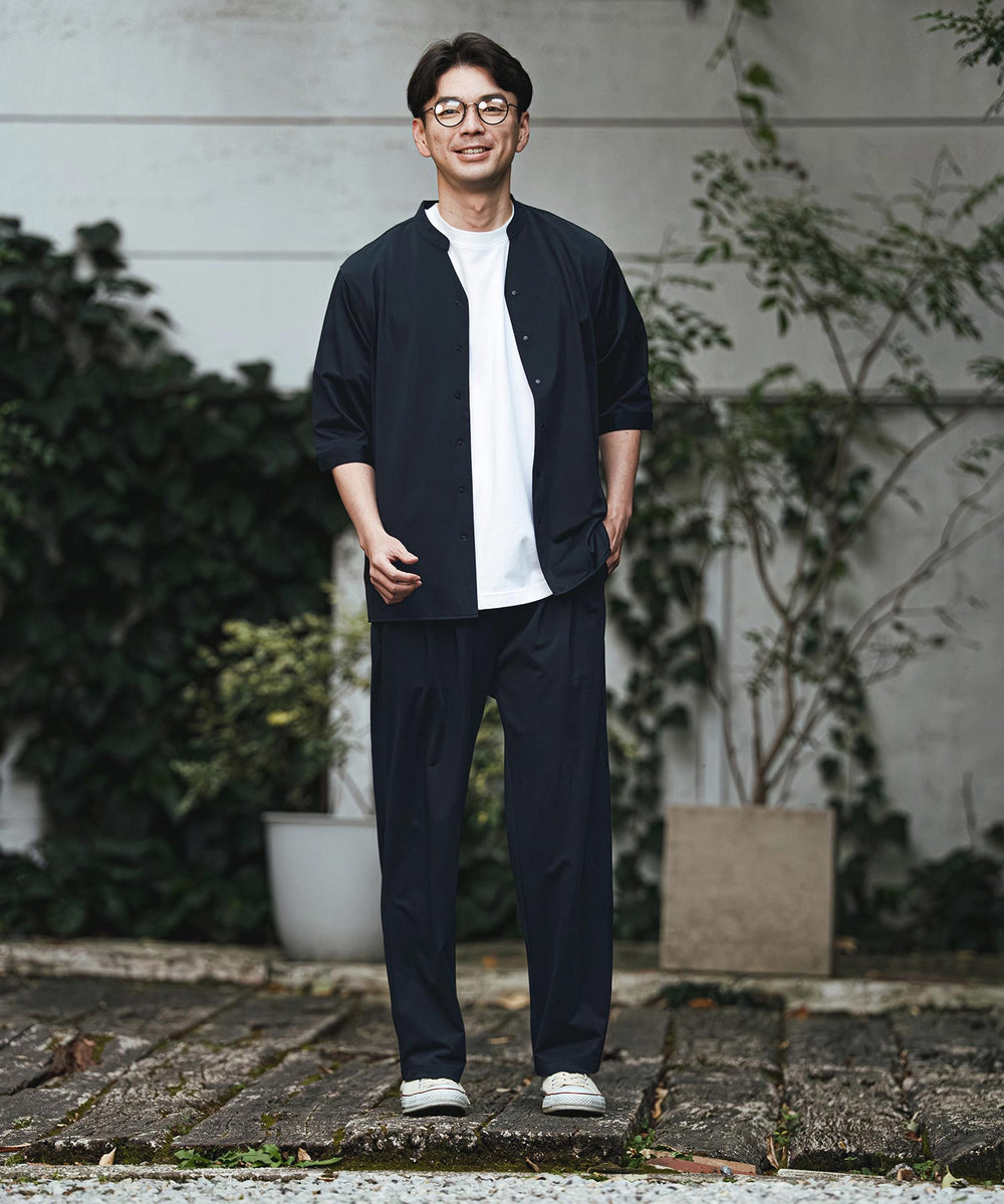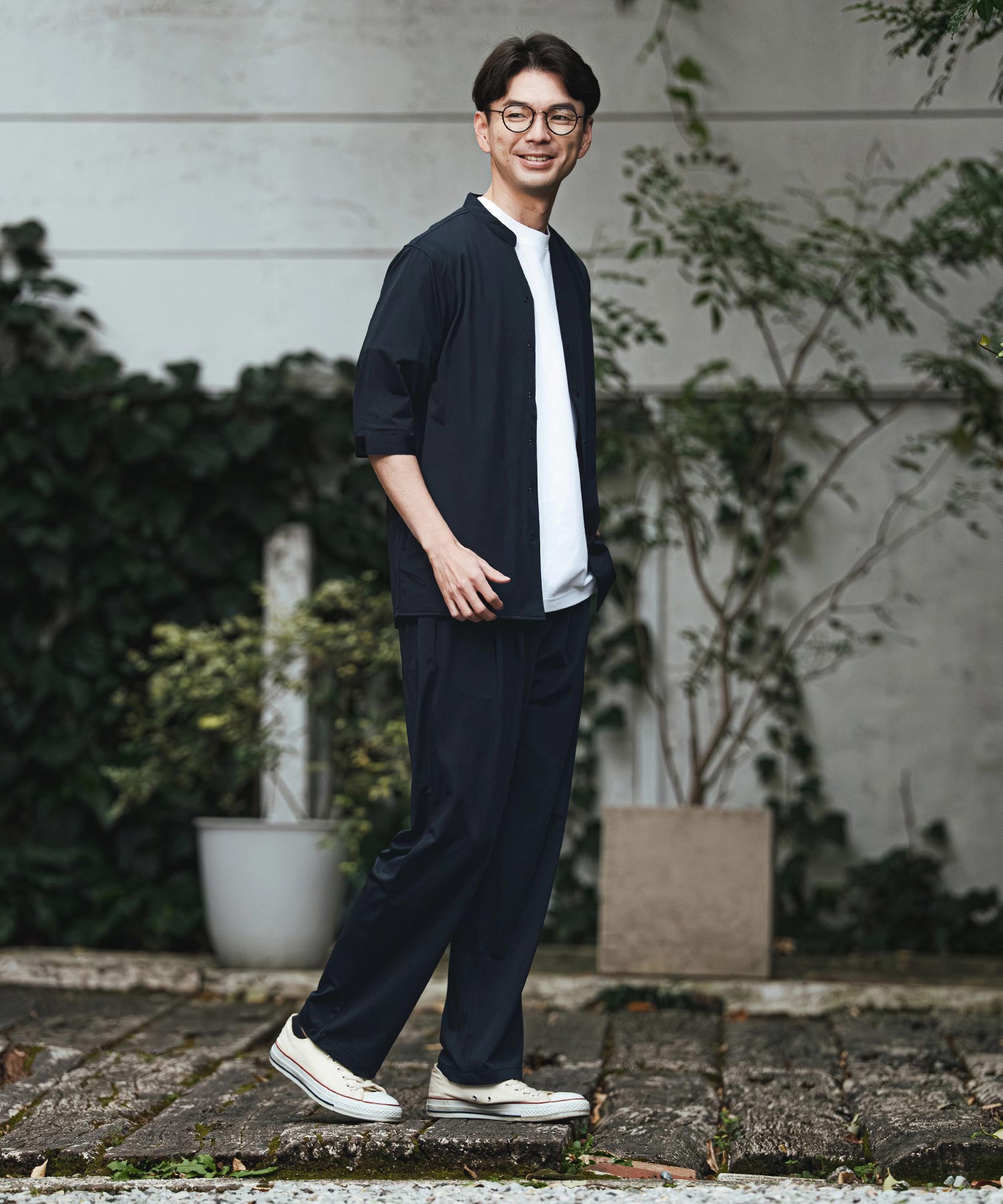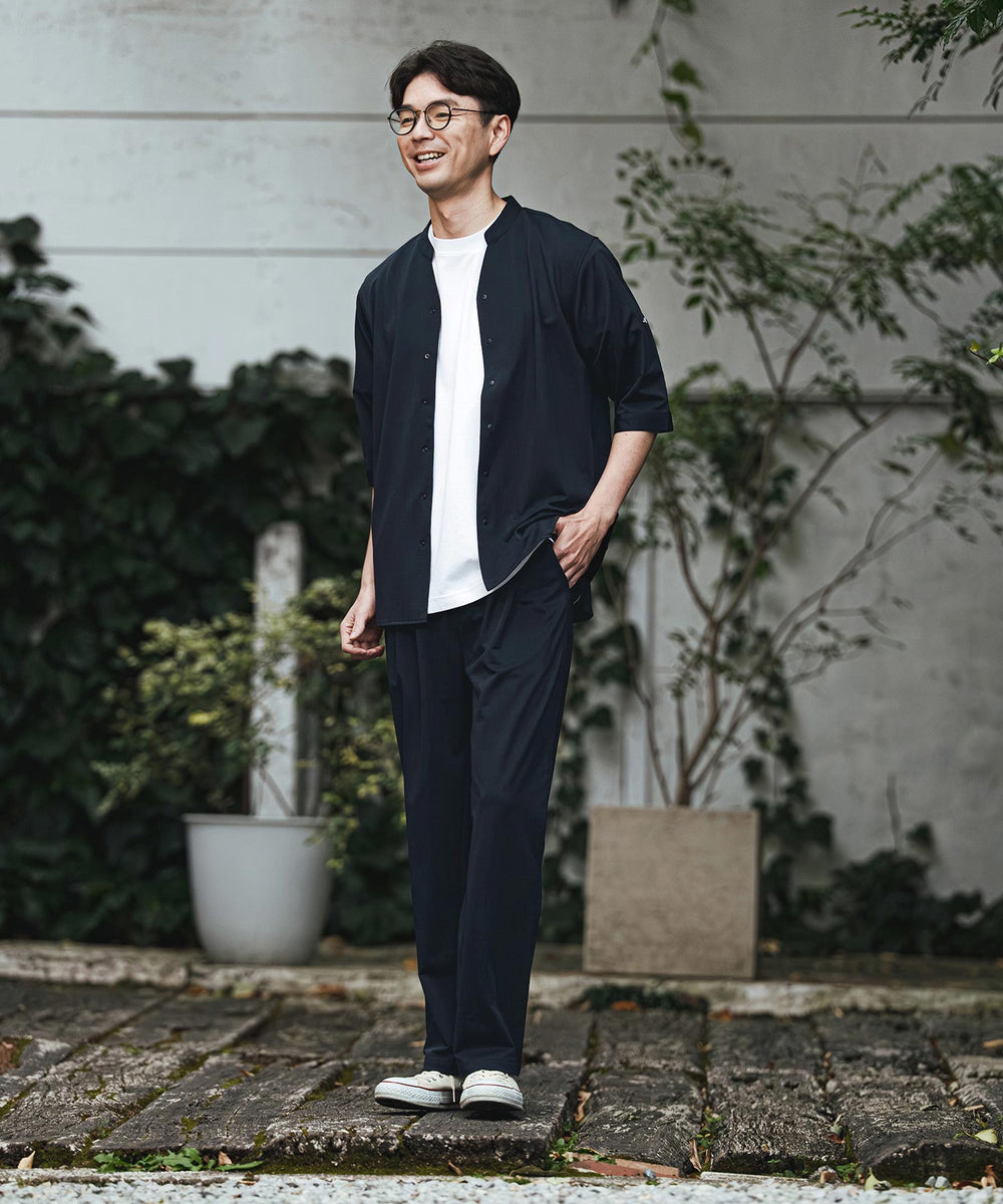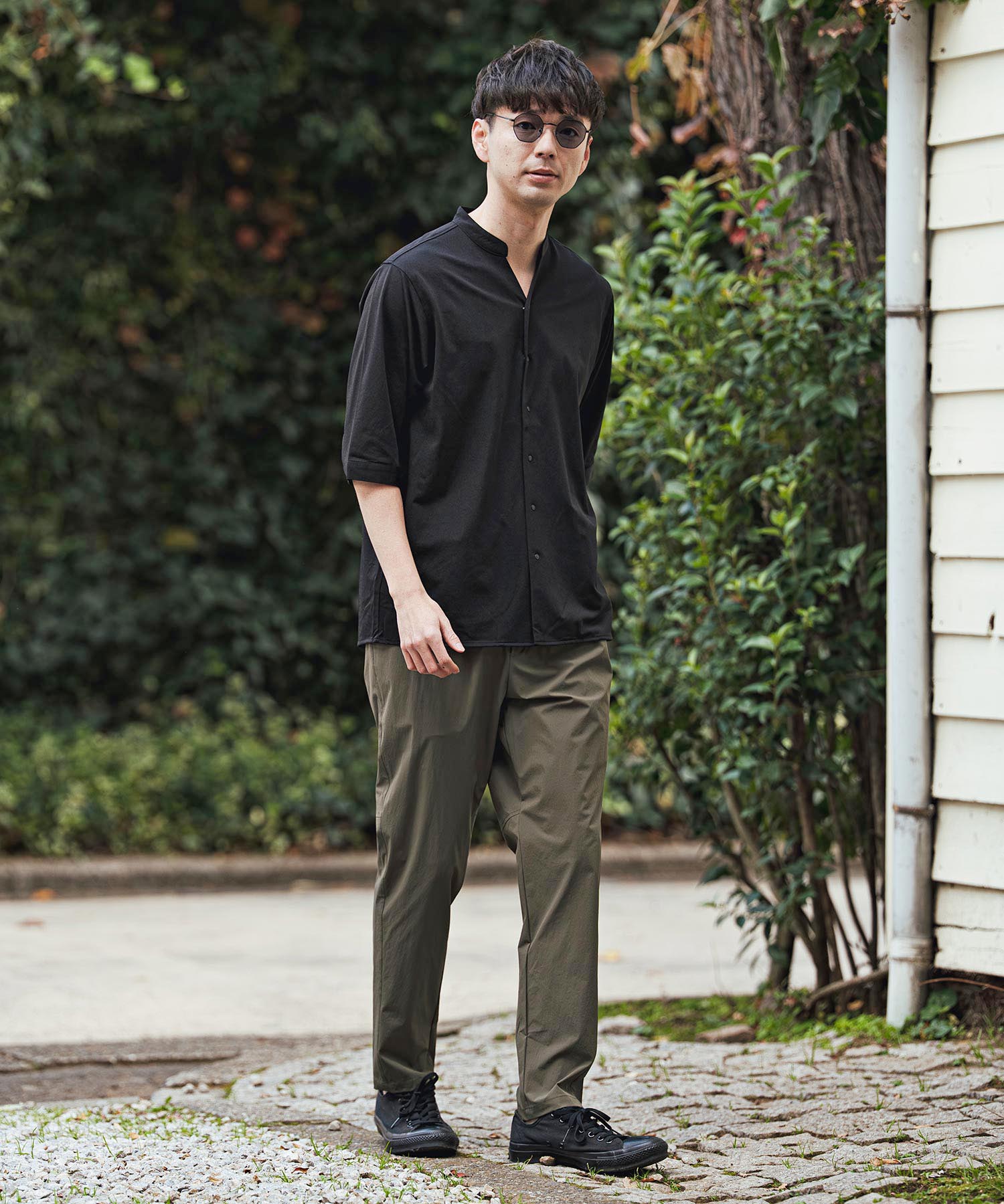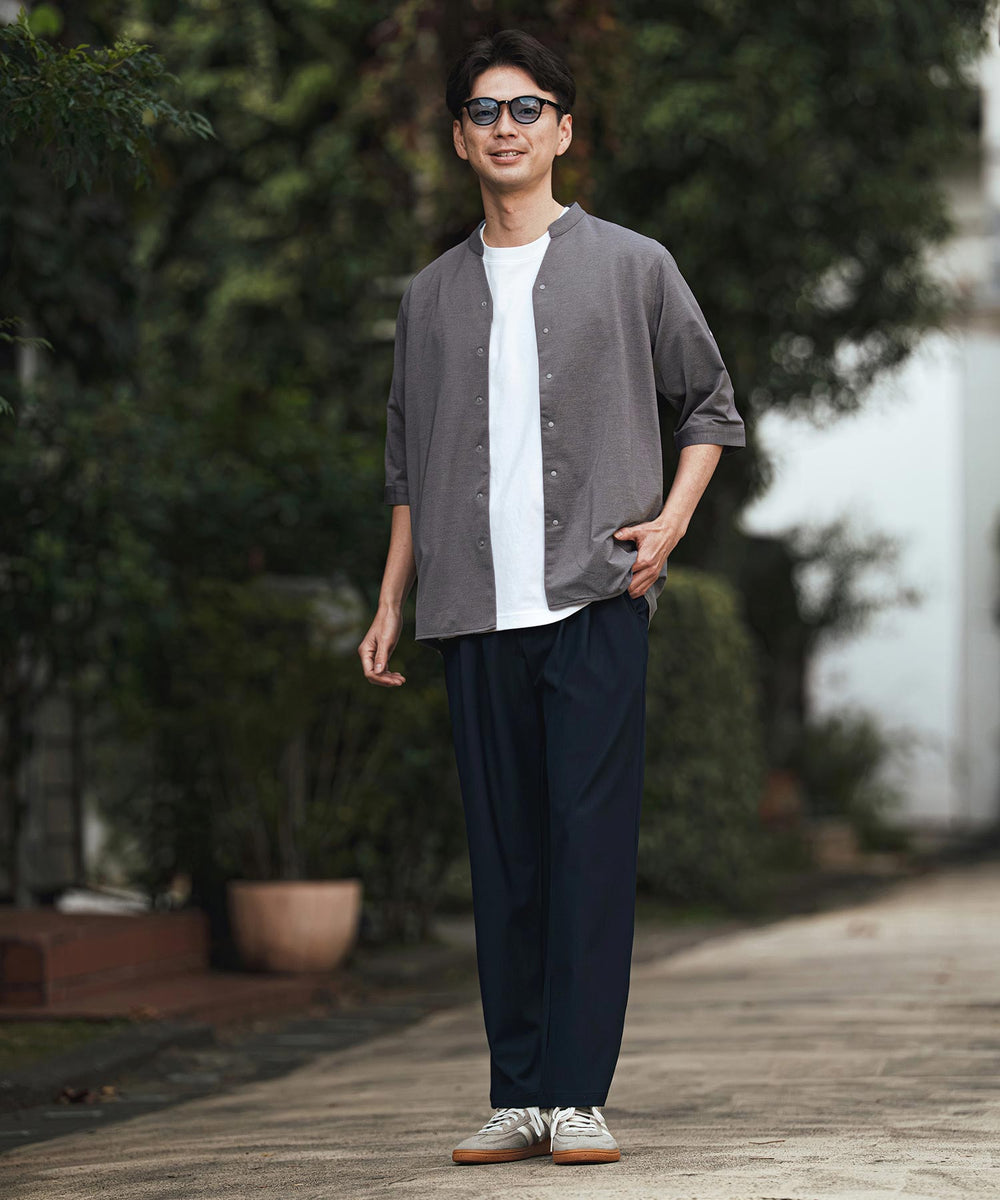 「KOKAGEシリーズ」の快適な機能性はそのままに、首元がすっきり見えるバンドカラーデザインを採用。五分袖で二の腕をカバーしつつ、涼しく着用いただけます。