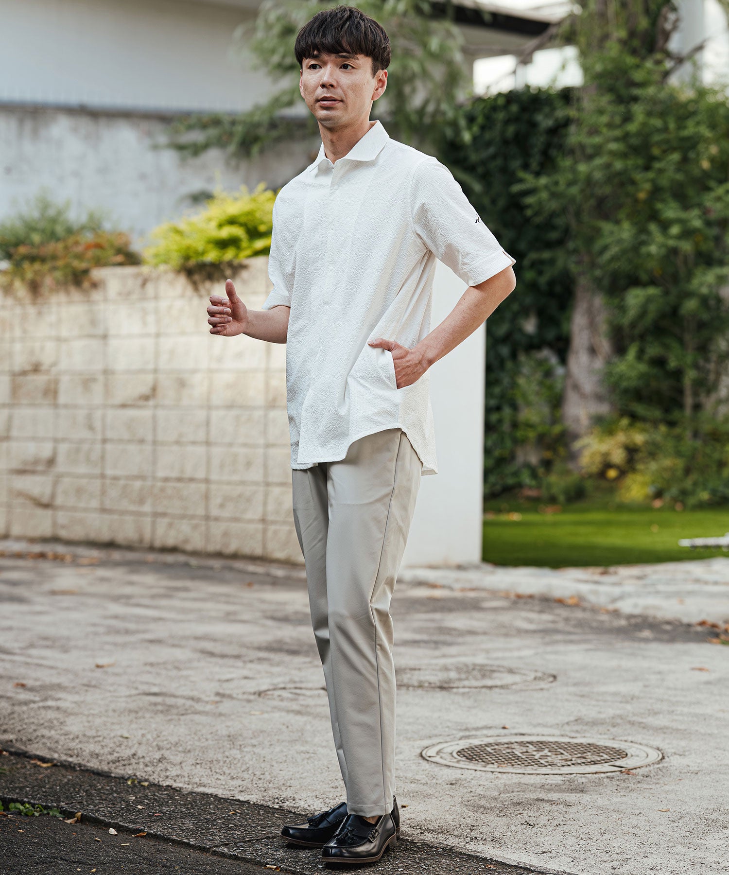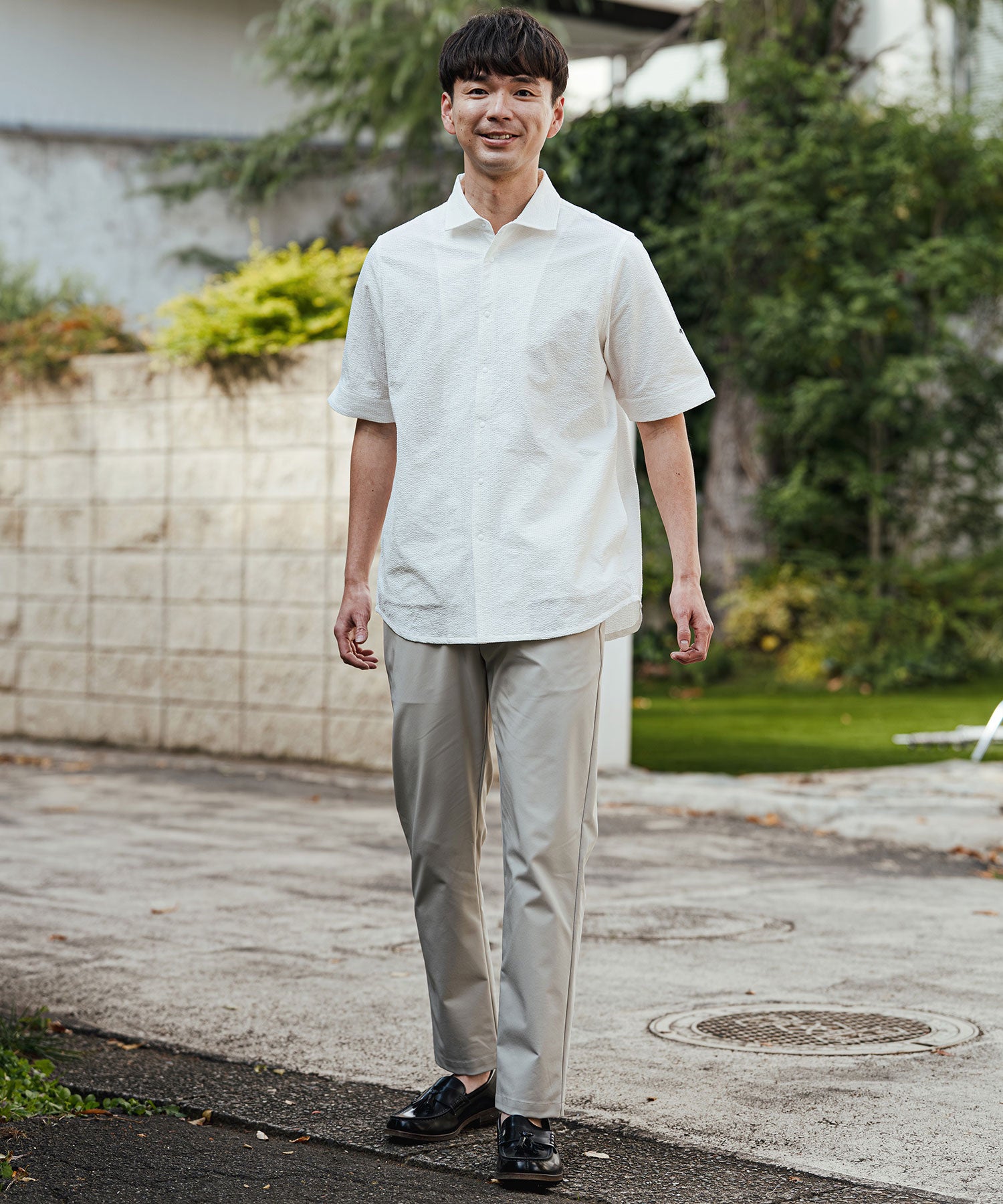 クールビズに最適なデザインです。スラックスと合わせれば、涼しげなビジネススタイルに。