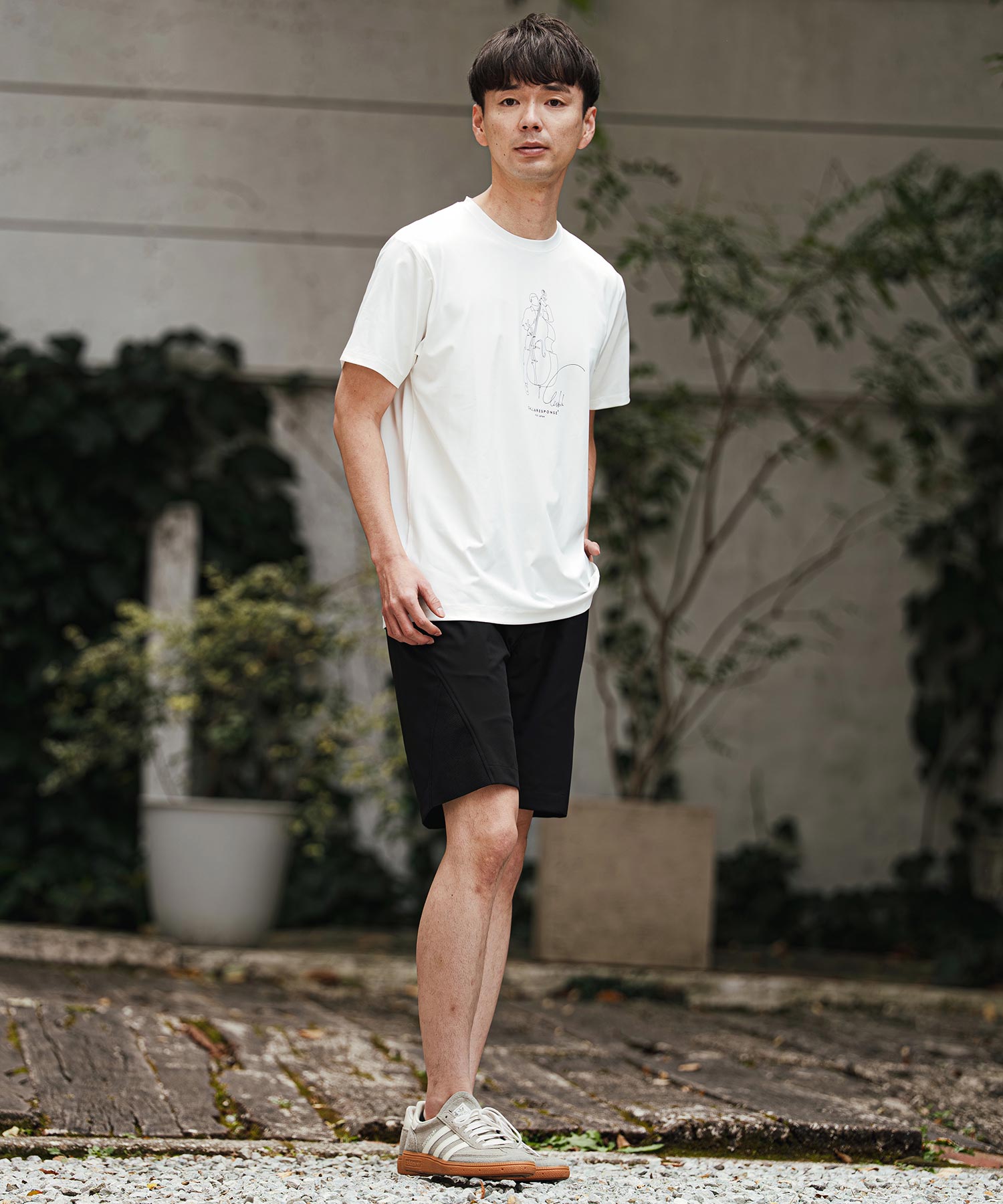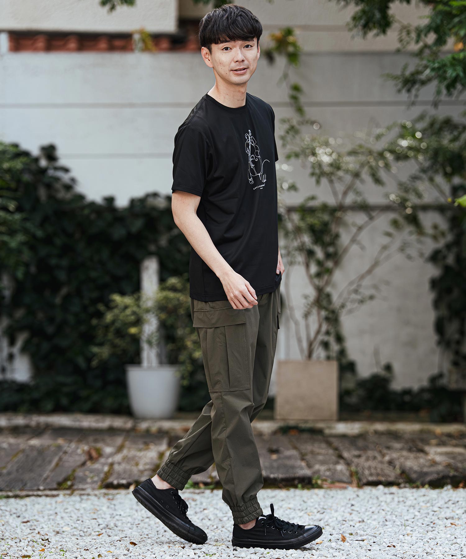 シンプルなパンツと合わせるだけで、プリントがアクセントになりコーディネートが決まります。