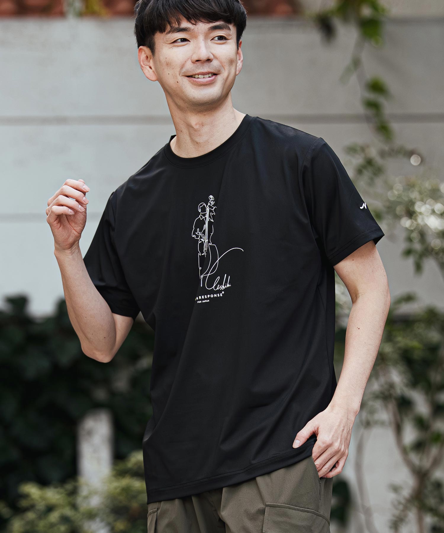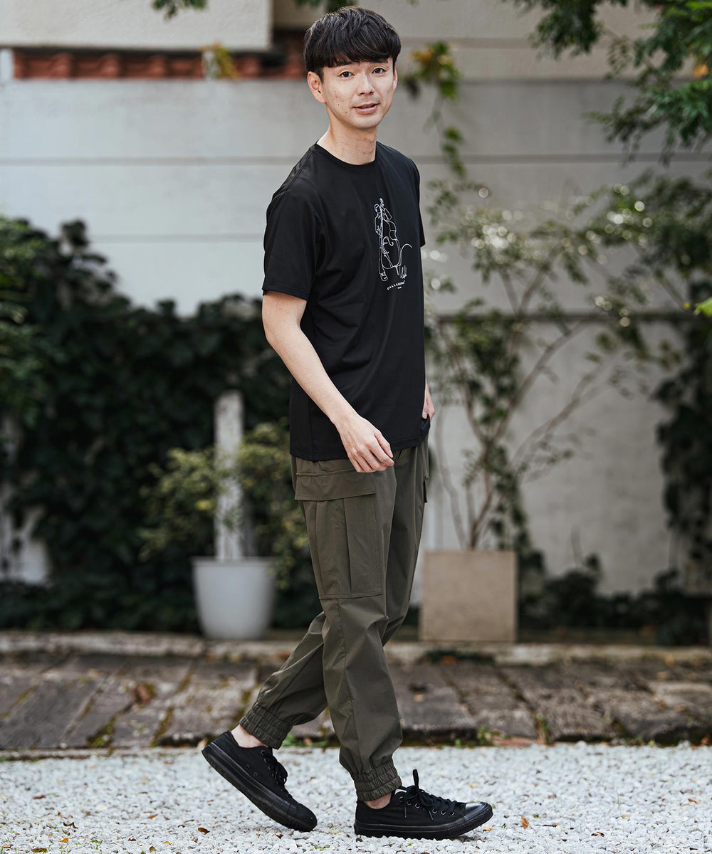 高機能ボディに個性的なアートプリントを施しました。吸湿速乾とストレッチ性で、おしゃれを楽しみながら快適に過ごせます。