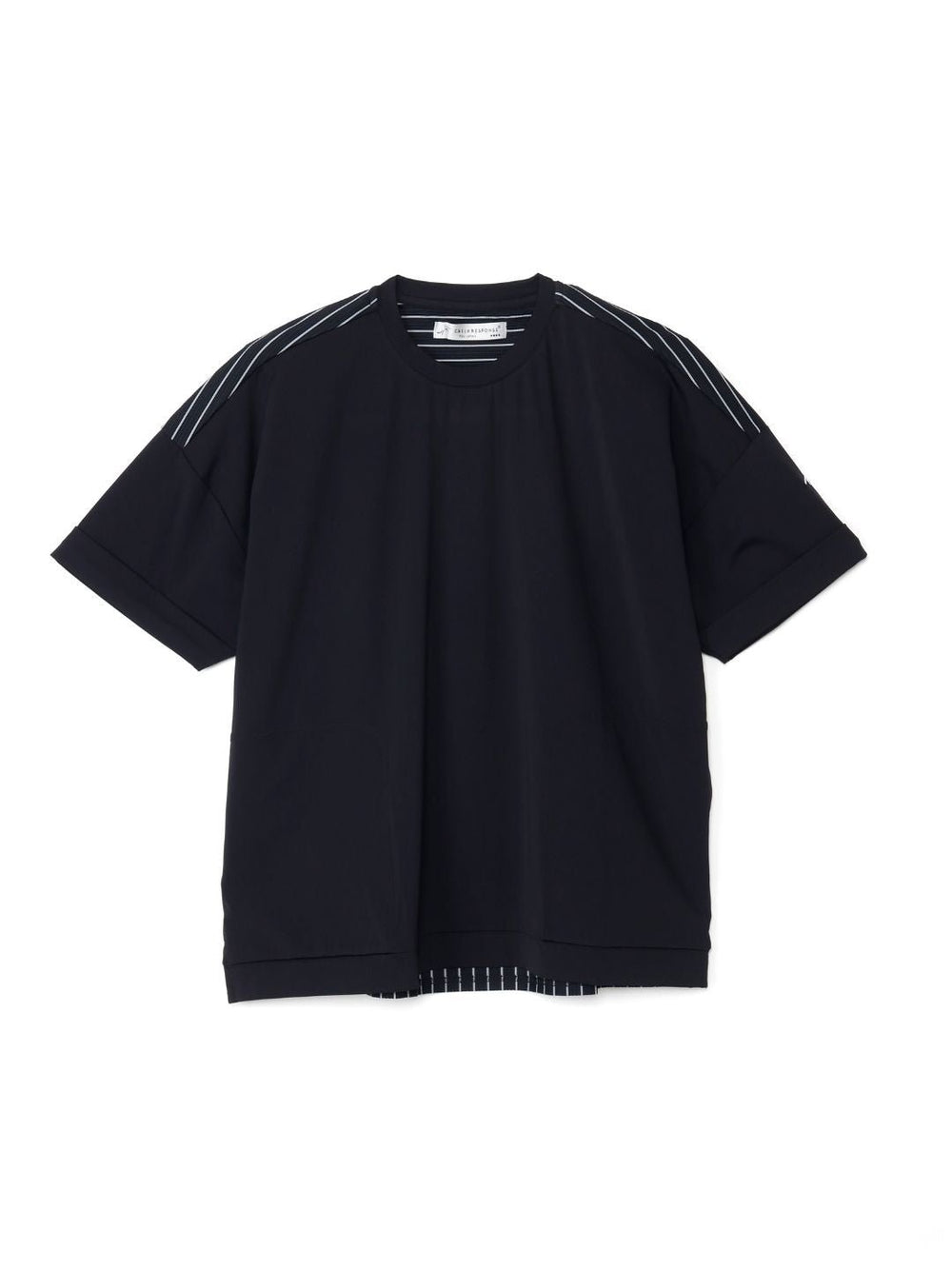 360度ハイストレッチ素材の快適さと、背面のストライプ切り替えデザインを融合。一枚で主役になれる、デザイン性の高い半袖Tシャツです。