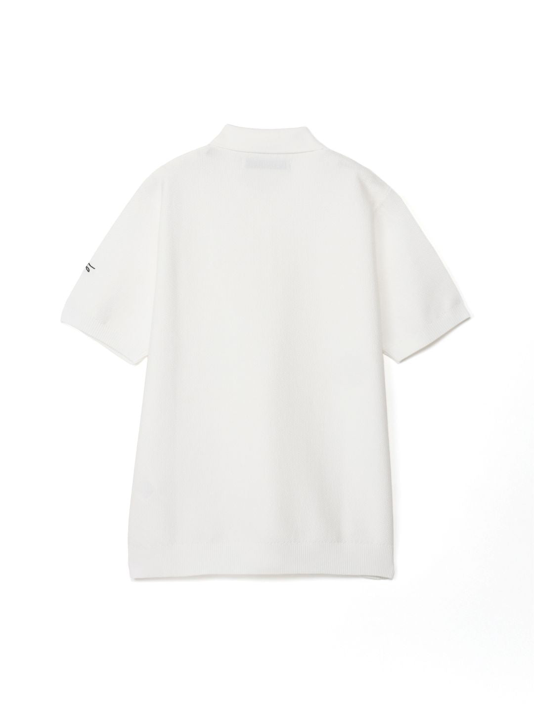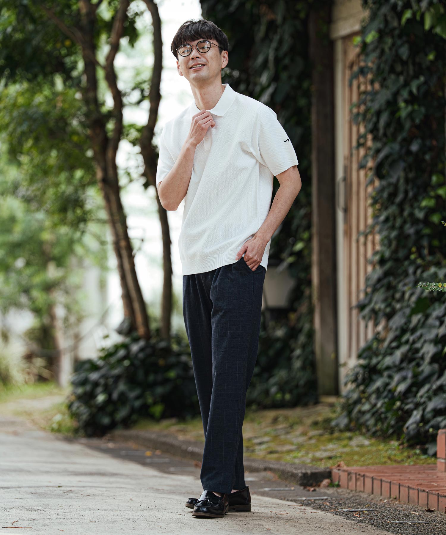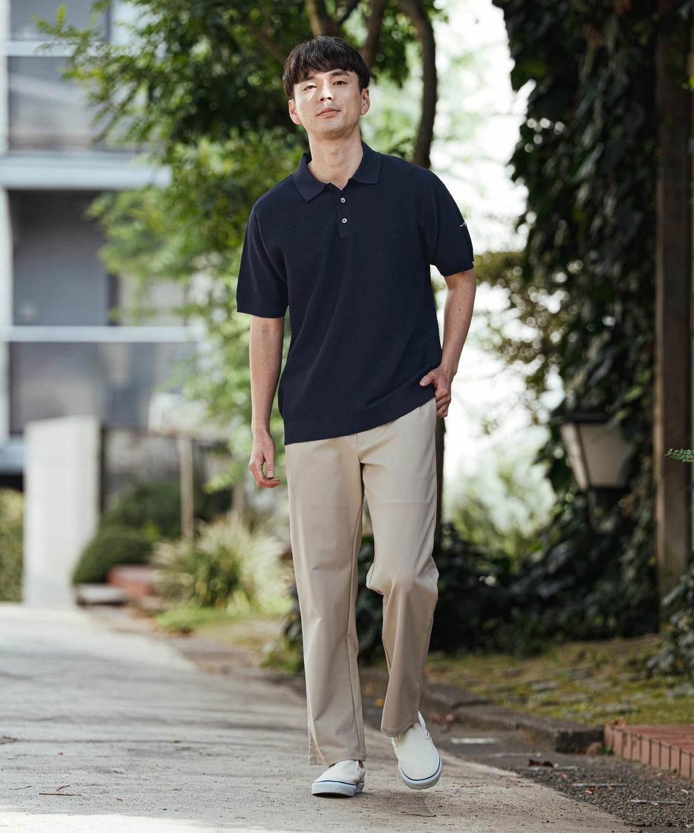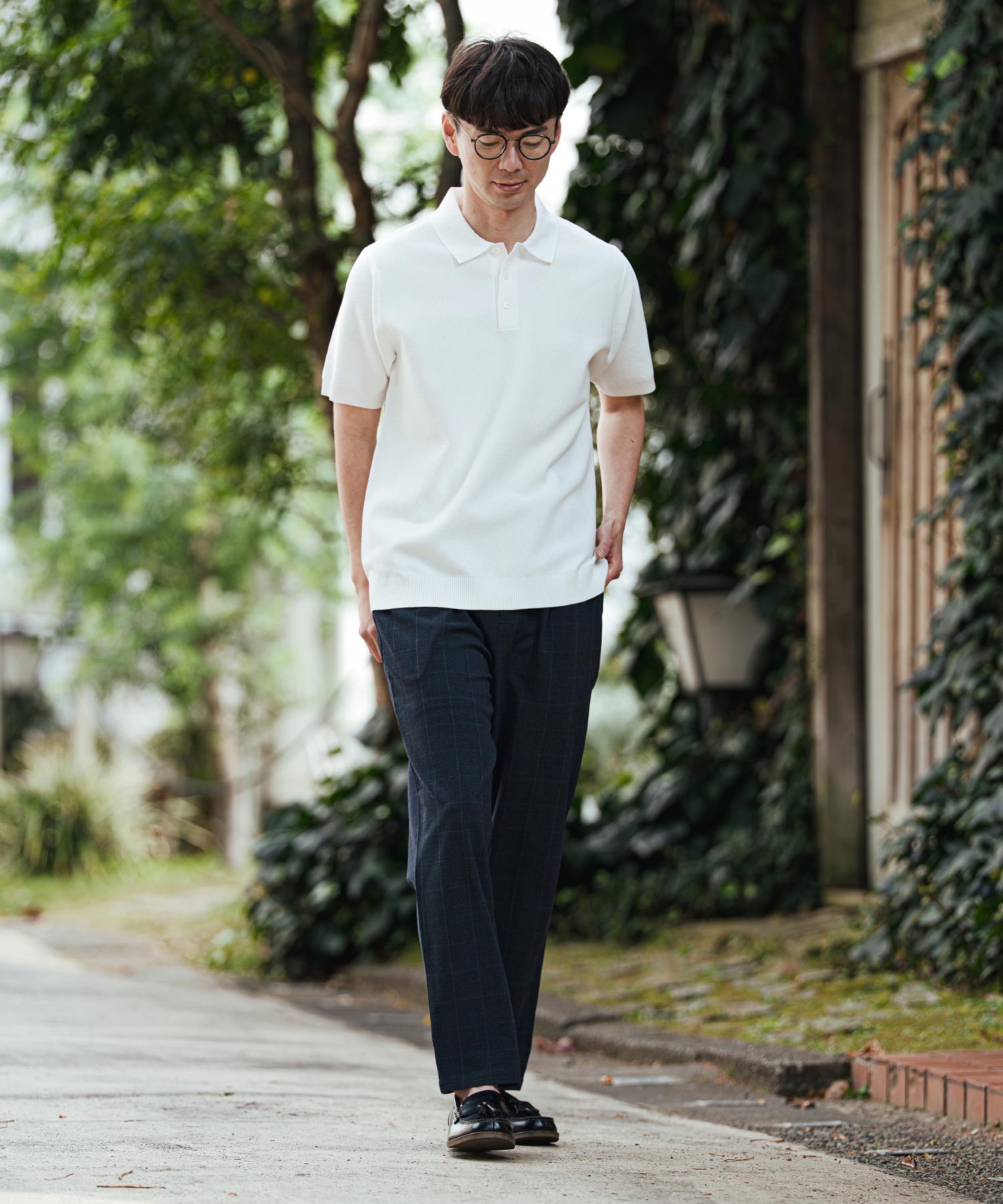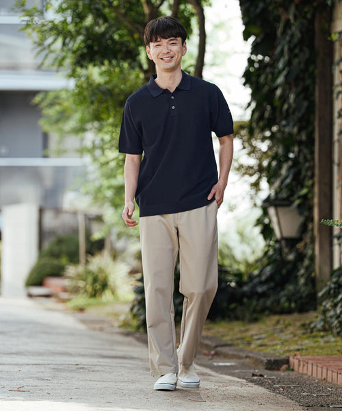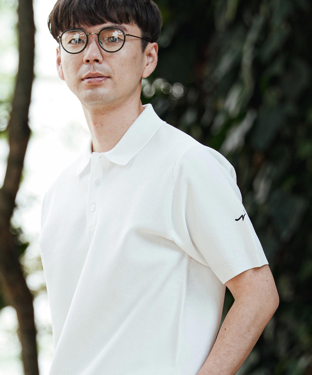 立体感のある鹿子編みが上品な印象を与える半袖ニットポロです。通気性と伸縮性に優れ、コンパクトなシルエットでスマートに着こなせます。