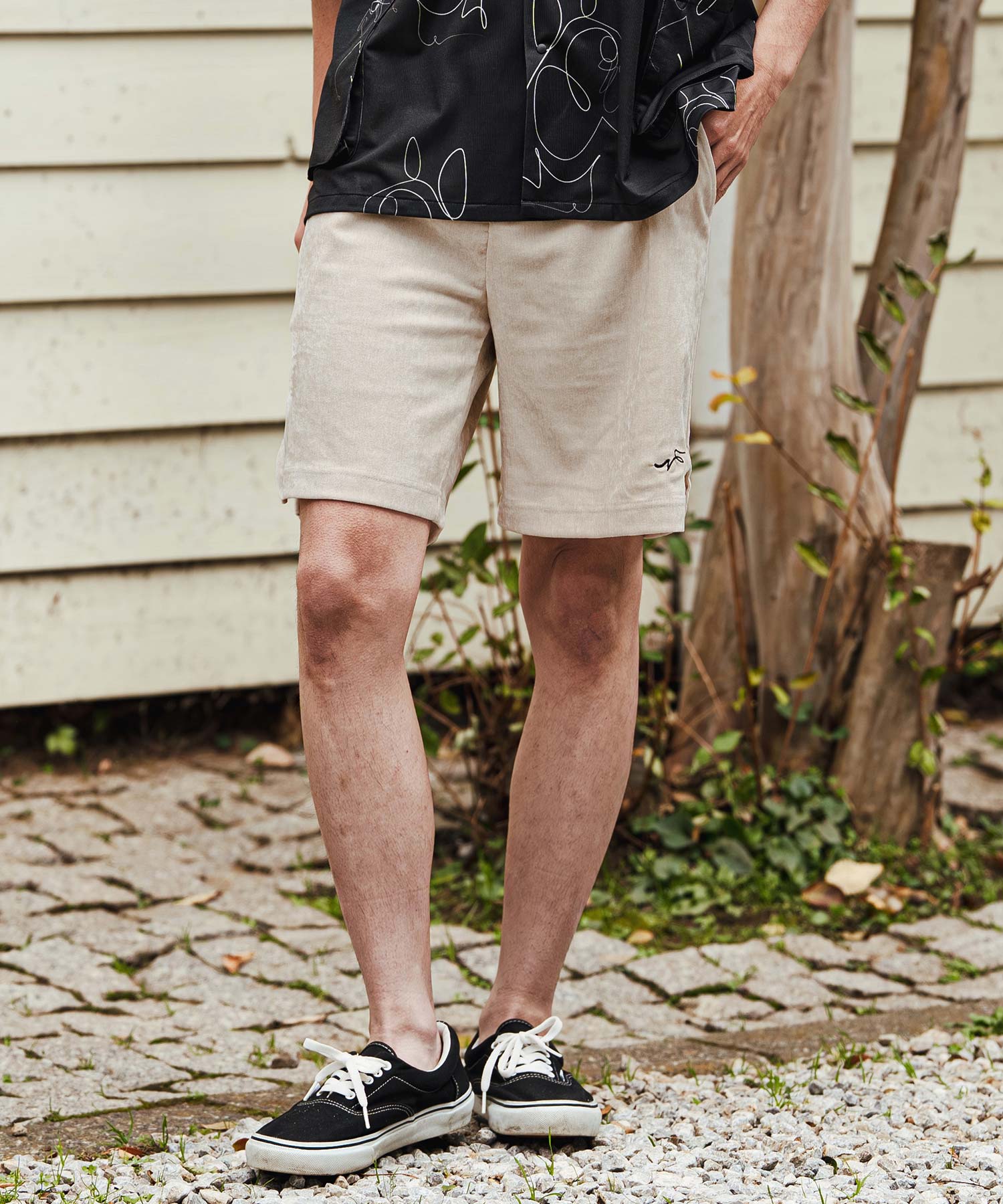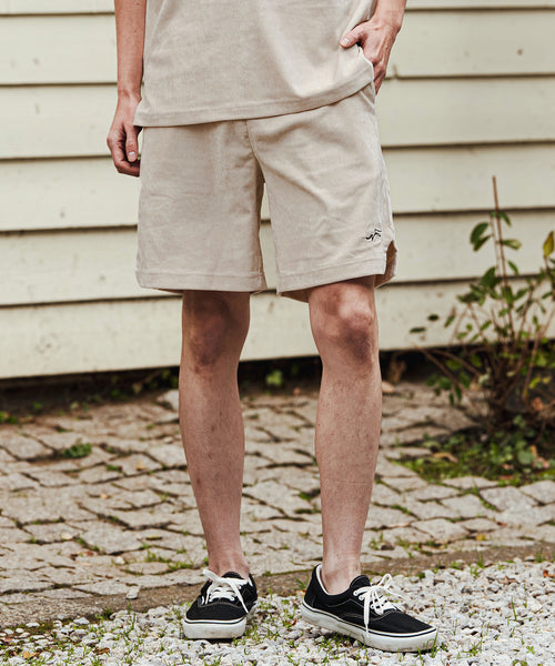 夏でも涼しく履ける通気性と速乾性を備えたサマーベロア素材を使用。上品な光沢と柔らかな履き心地で、大人のリゾートスタイルに最適です。