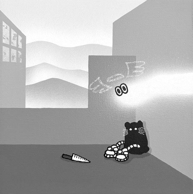 BURUMORI's work depicts 'after being oppressed and foreseeing the violence that will happen in the future', as well as the way